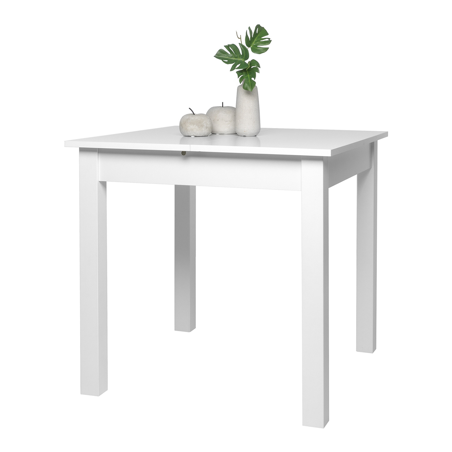 Čtvercový rozkládací stůl je vyroben z laminované dřevotřísky v barevném provedení bílá. Výsuvný díl zvětší stůl o 40 cm. Zboží dodáváme v demontu.