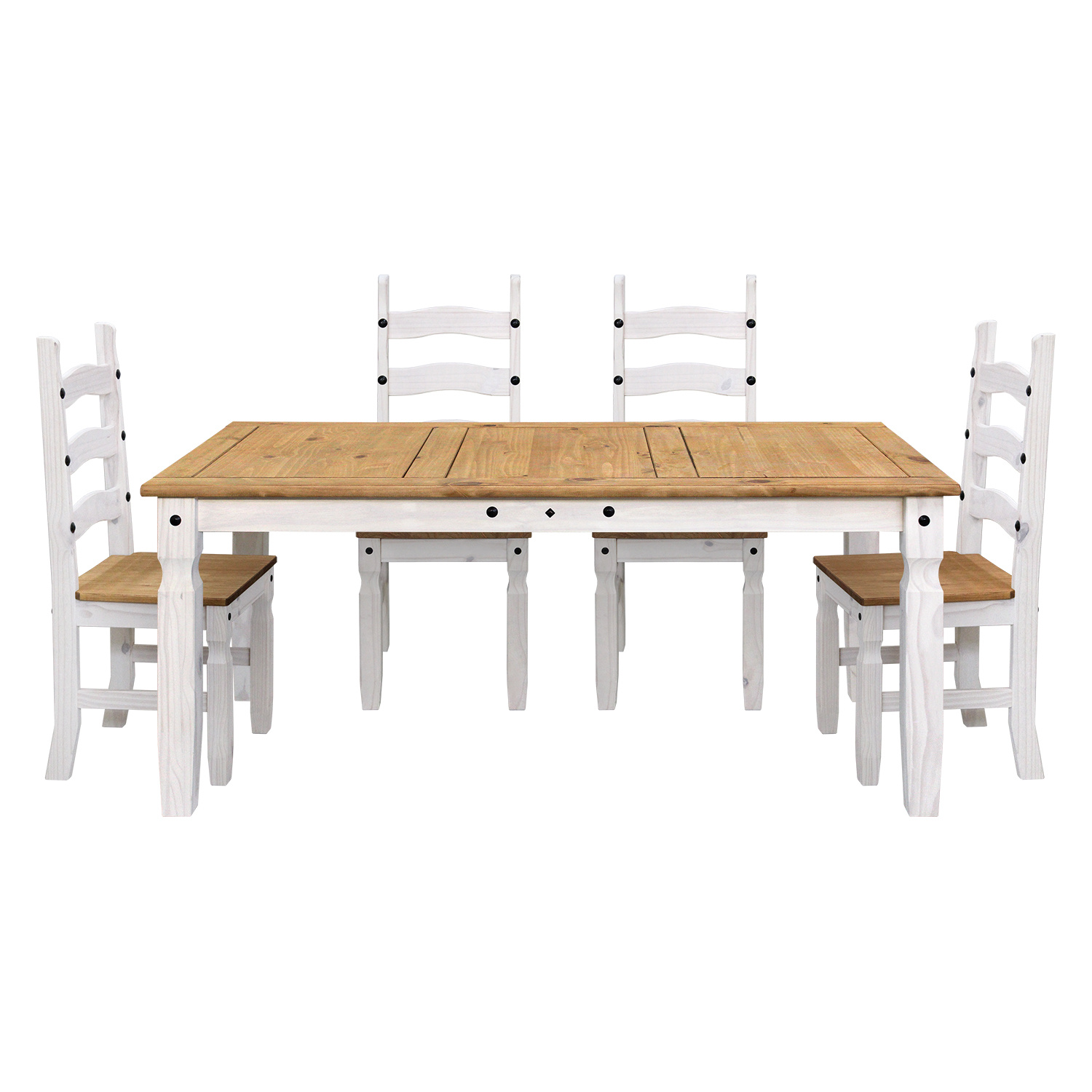 jídelní stůl a 4 jídelní židle materiál masiv borovice voskovaná v bílém odstínu horní deska stolu i židle masiv borovice voskovaná v medovém odstínu výška sedu židle 46 cm