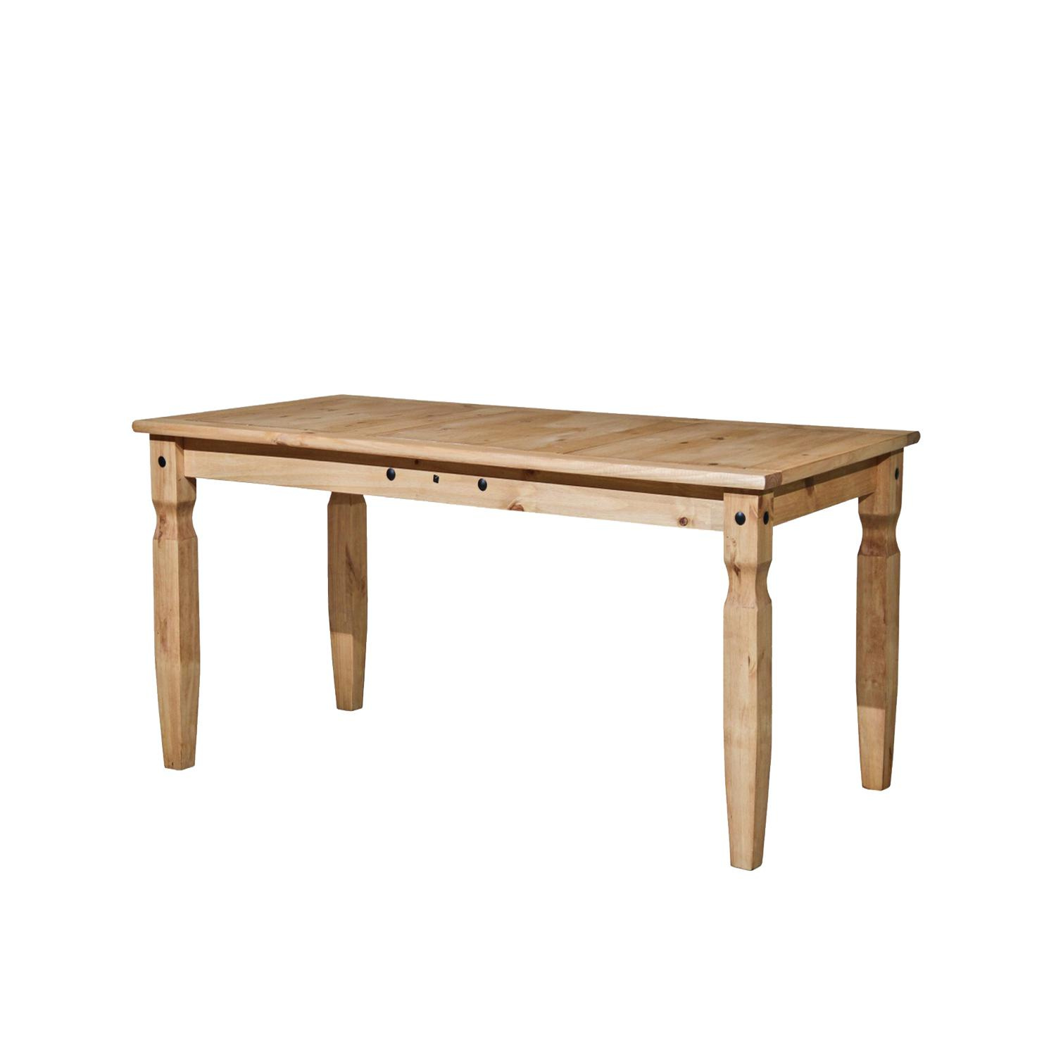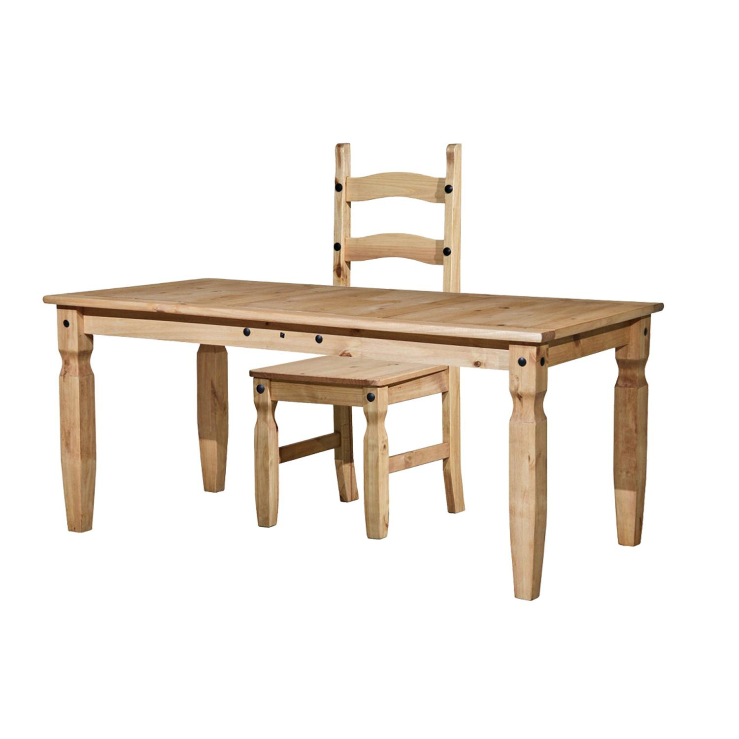 Jídelní stůl v provedení masiv borovice je voskován v krásném medovém odstínu a zkrášlují jej černé ozdobné prvky. K tomuto kvalitnímu jídelnímu stolu budou dokonale ladit právě židle ze sestavy CORONA. Zboží je dodáváno v demontu.