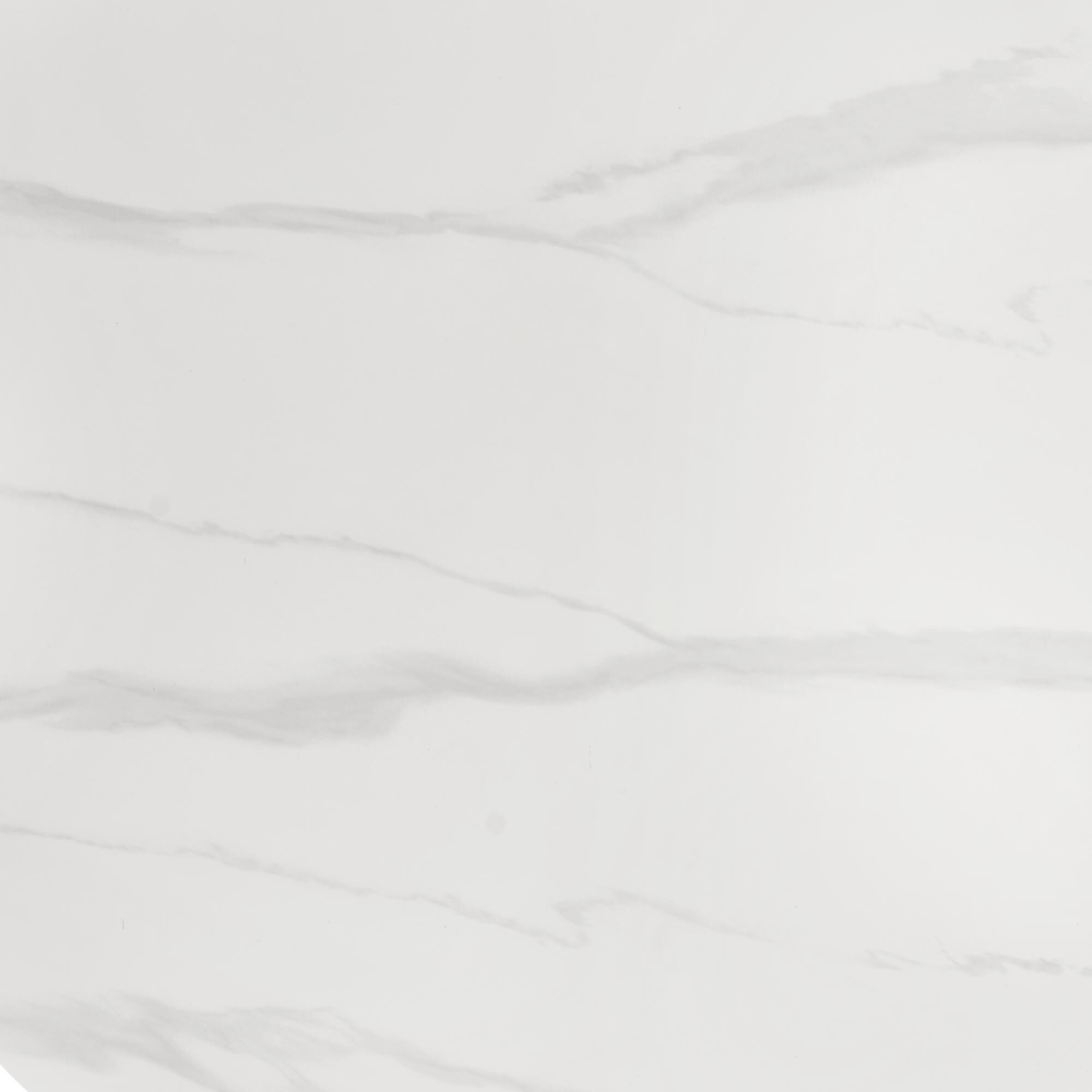 Jídelní stůl je vyroben ze slinutého kamene v dekoru bílého mramoru a práškově lakované černé podnože. Zboží dodáváme v demontu.
