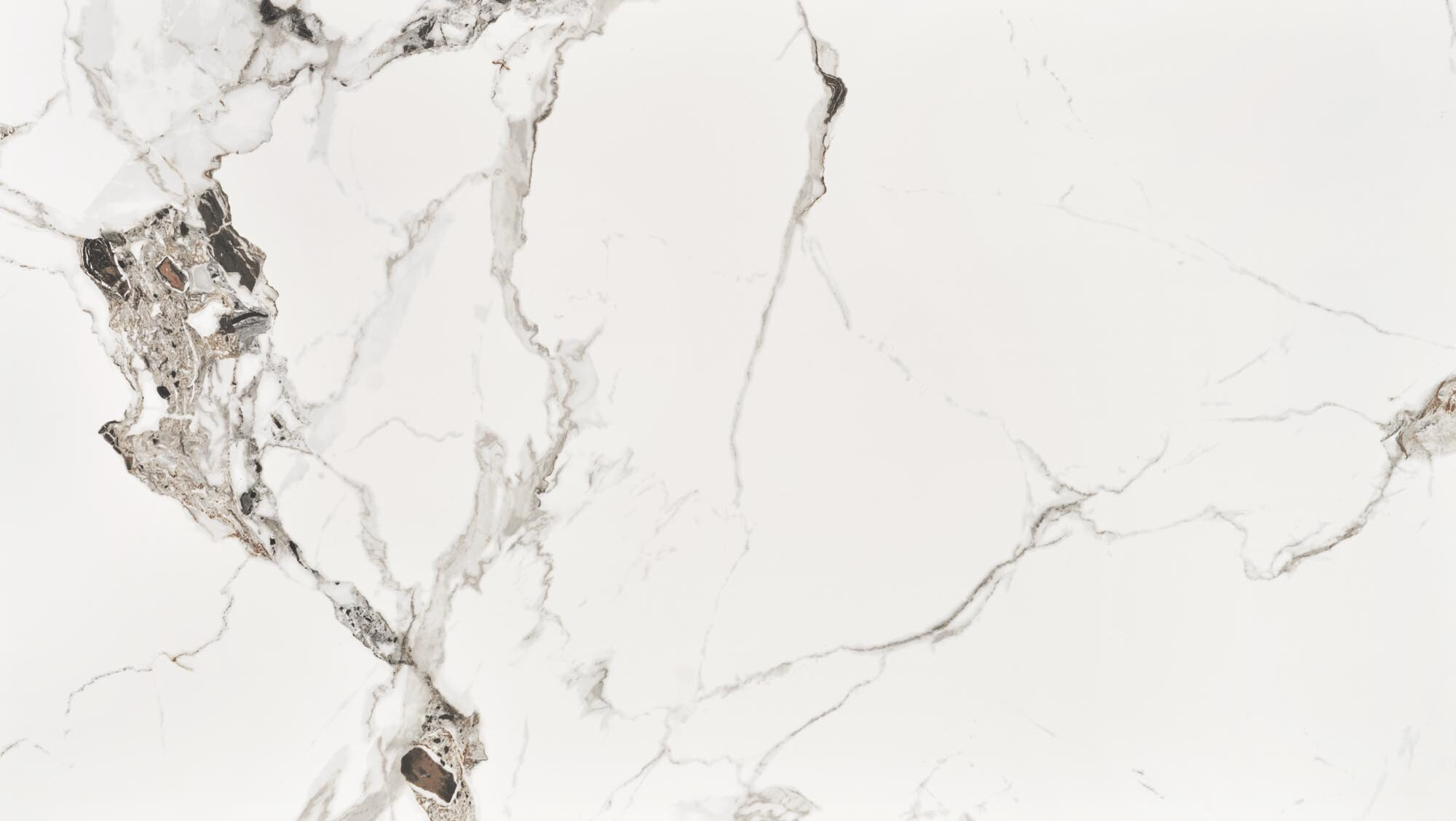 Jídelní stůl je vyroben v kombinaci slinutého kamene v dekoru bílého mramoru a práškově lakované černé podnože. Zboží dodáváme v demontu.