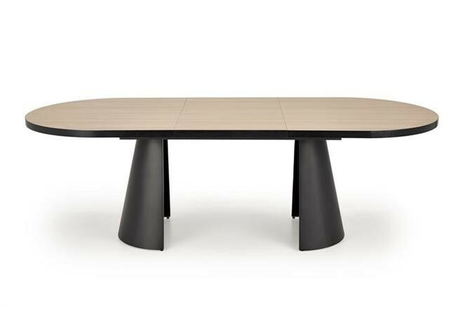 Jídelní stůl Giacomo je vyrobený z kombinaci dýhované MDF desky a práškově lakované oceli v provedení přírodní/ černá.