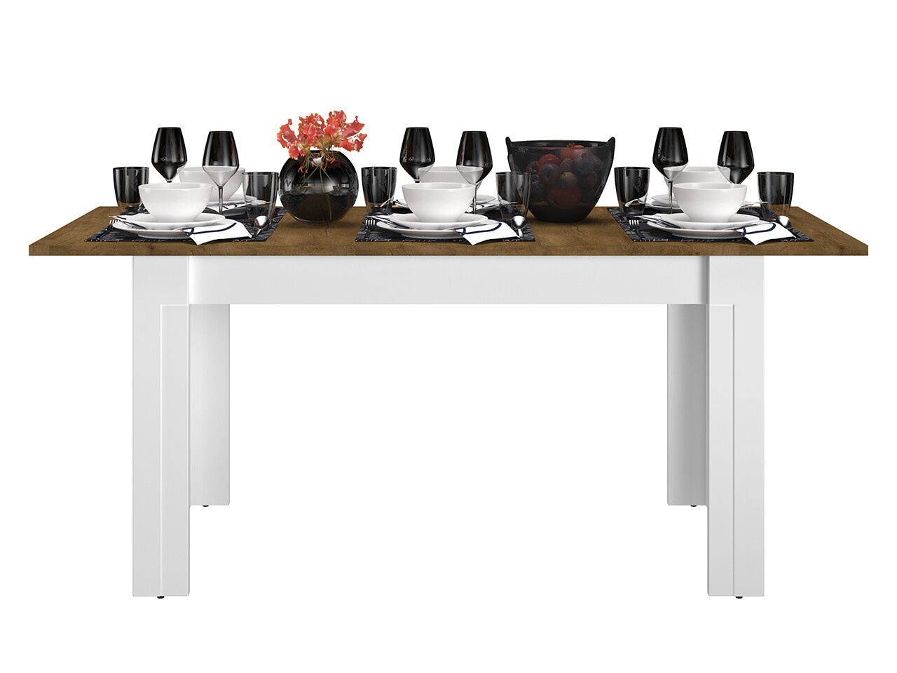 Jídelní stůl Lille  je vyroben z kvalitního lamina v dezénu korpus bílá/bílý mat a vrchní deska dub lefkas. Rozkladem vznikn délka 180 cm. Zboží dodáváme v demontu.