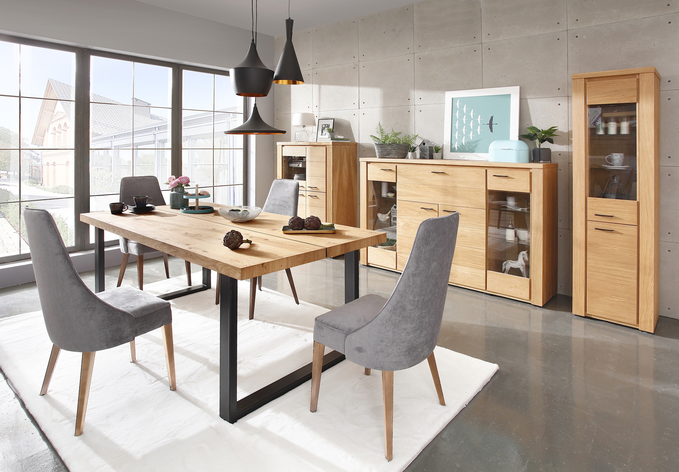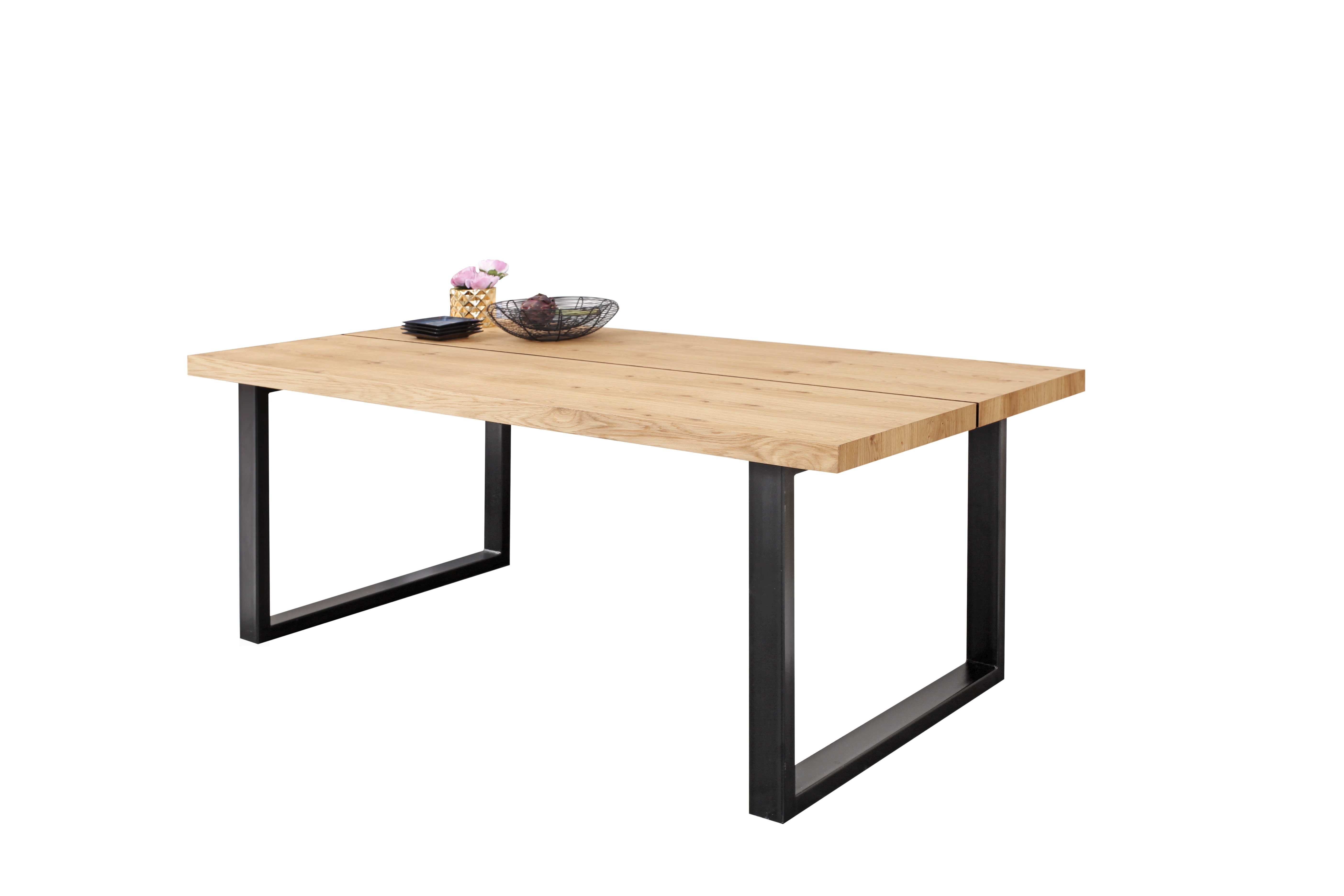 Jídelní stůl má desku stolu vyrobenou z dýhy ošetřené přírodním olejem, nohy prášková ocel. Možnost vložení maximálně dvou vkladů  50/90 cm. Možnost výběru z několika odstínů moření dřeva. Stůl vhodný k systému NATURA.