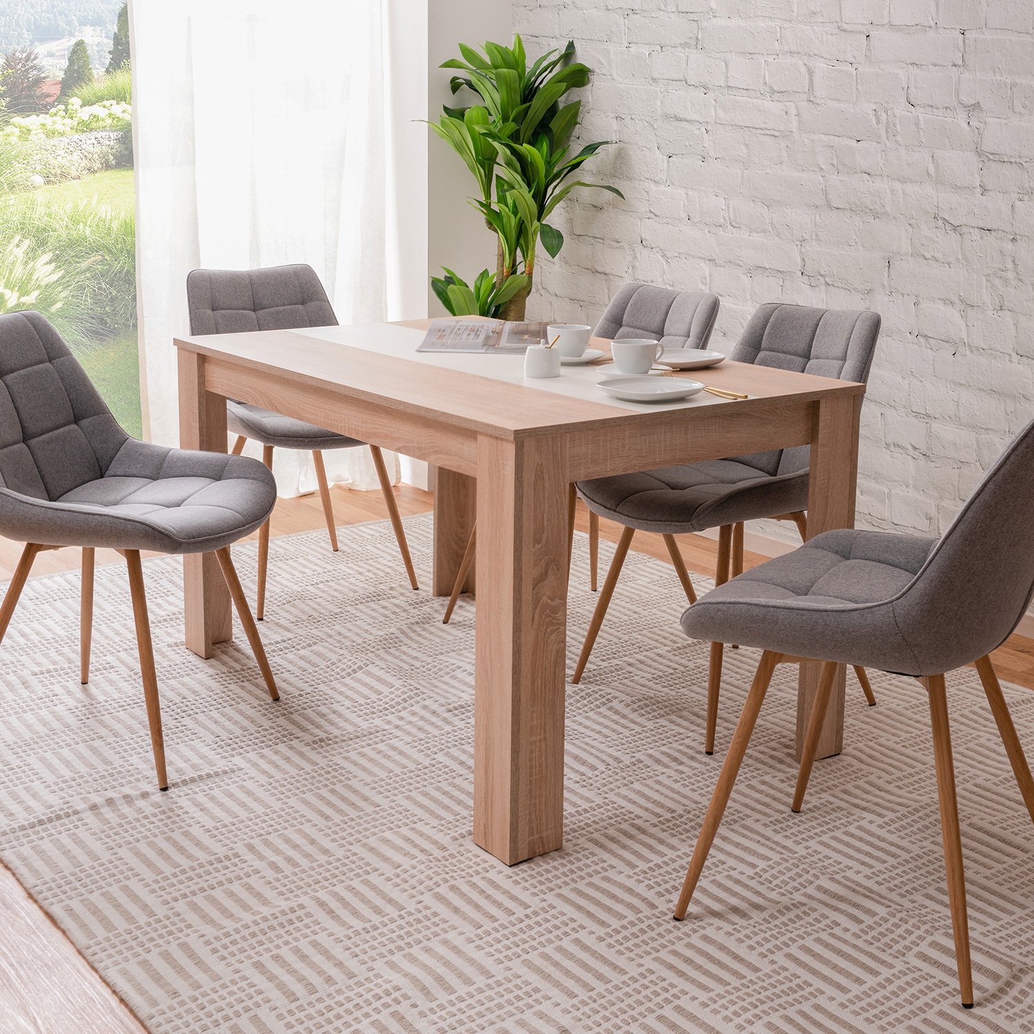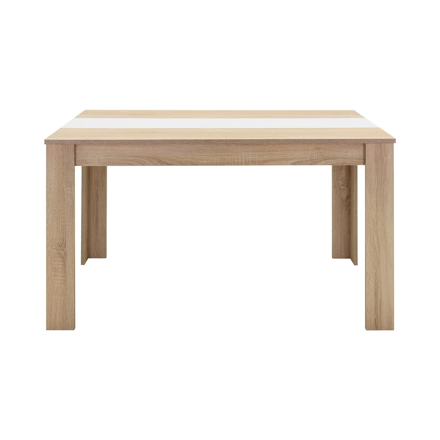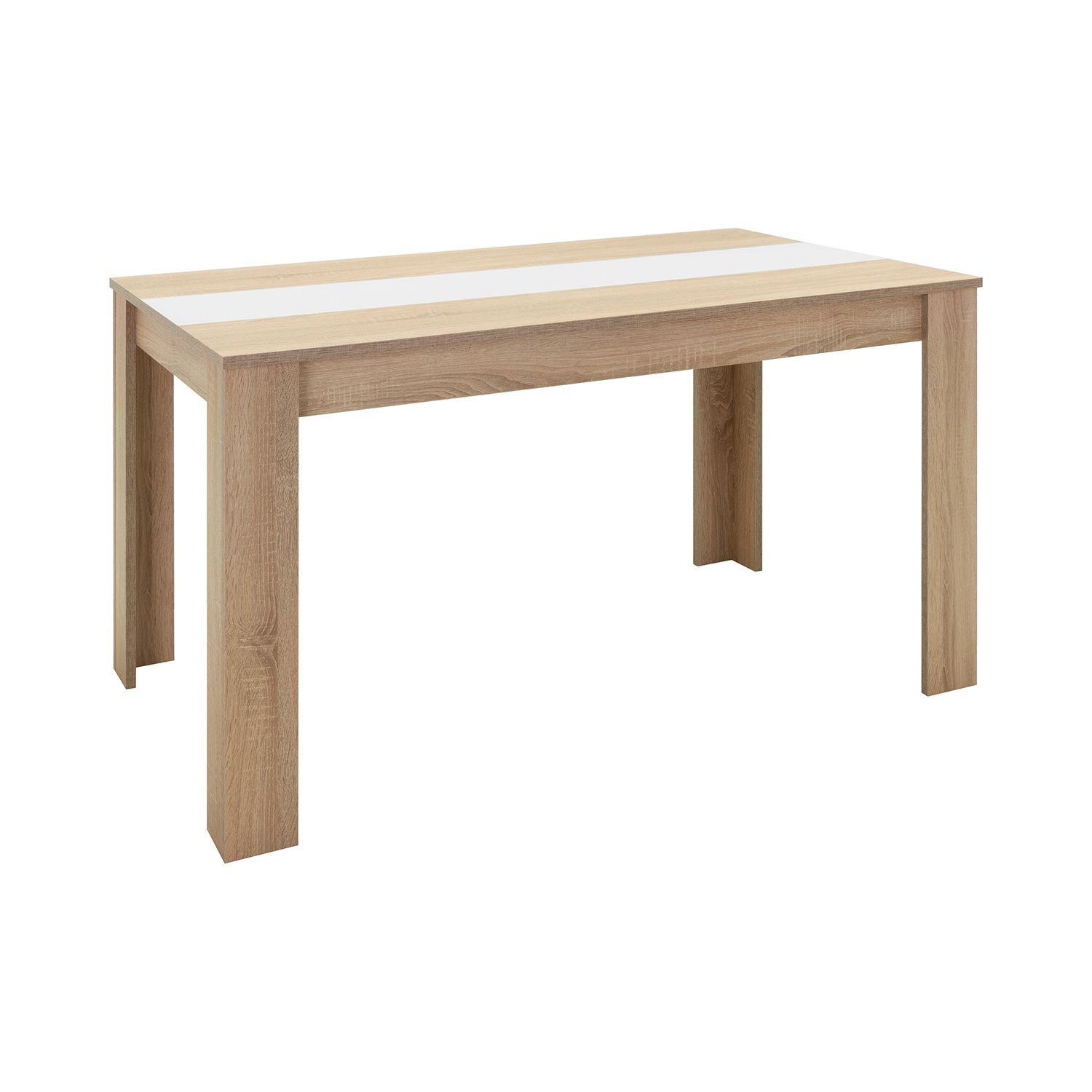Jídelní stůl NIKOLAS v barevném provedení imitace dub má zajímavě řešený prostřední díl, ten je oboustranný, takže si můžete vybrat bílou nebo černou barvu, dle prostírání. Robustní jídelní stůl bude dominantou vaší jídelny. Zboží dodáváme v demontu.