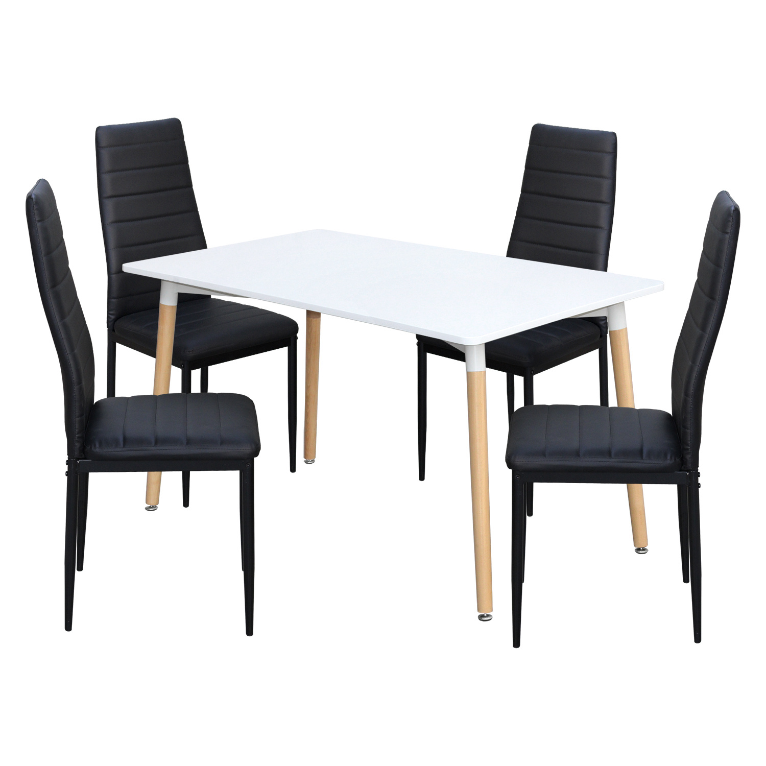 jídelní stůl ONE 3152 a 4 jídelní židle SIGMA 3166 stůl: deska MDF, barevné provedení bílá kovová konstrukce, barevné provedení bílá kulaté nohy, materiál masiv buk židle: potah kůže – imitace, barevné provedení černá kovové nohy a konstrukce, výška sedu židle 47 cm rozměr stolu (š/h/v) 140 × 90 × 74 cm rozměr židle (š/h/v) 42 × 41 × 98 cm