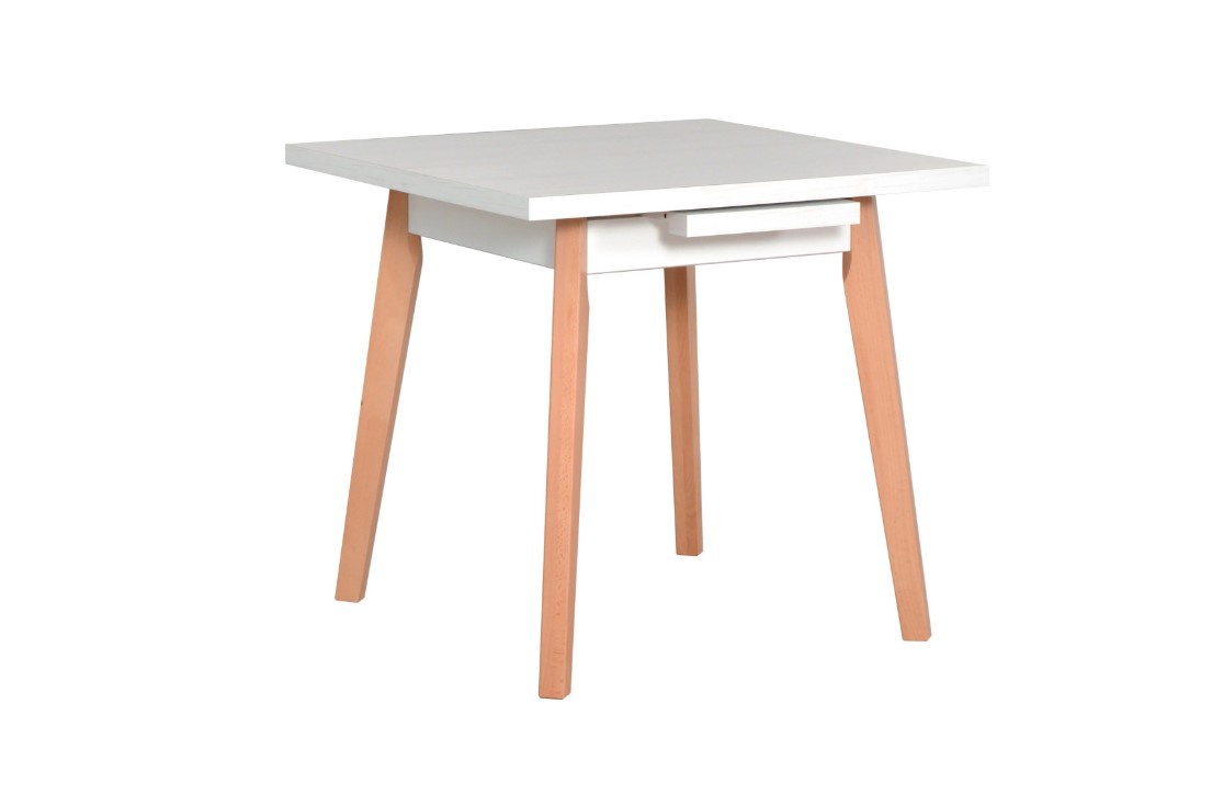 Jídelní stůl OSLO 1 je vyroben v kombinaci masivního bukového dřeva a odolného lamina. Bukové dřevo je použito na nohy a kostru stolu, lamino v bílé barvě je využito na odolnou desku stolu. Zboží dodáváme v demontu.
