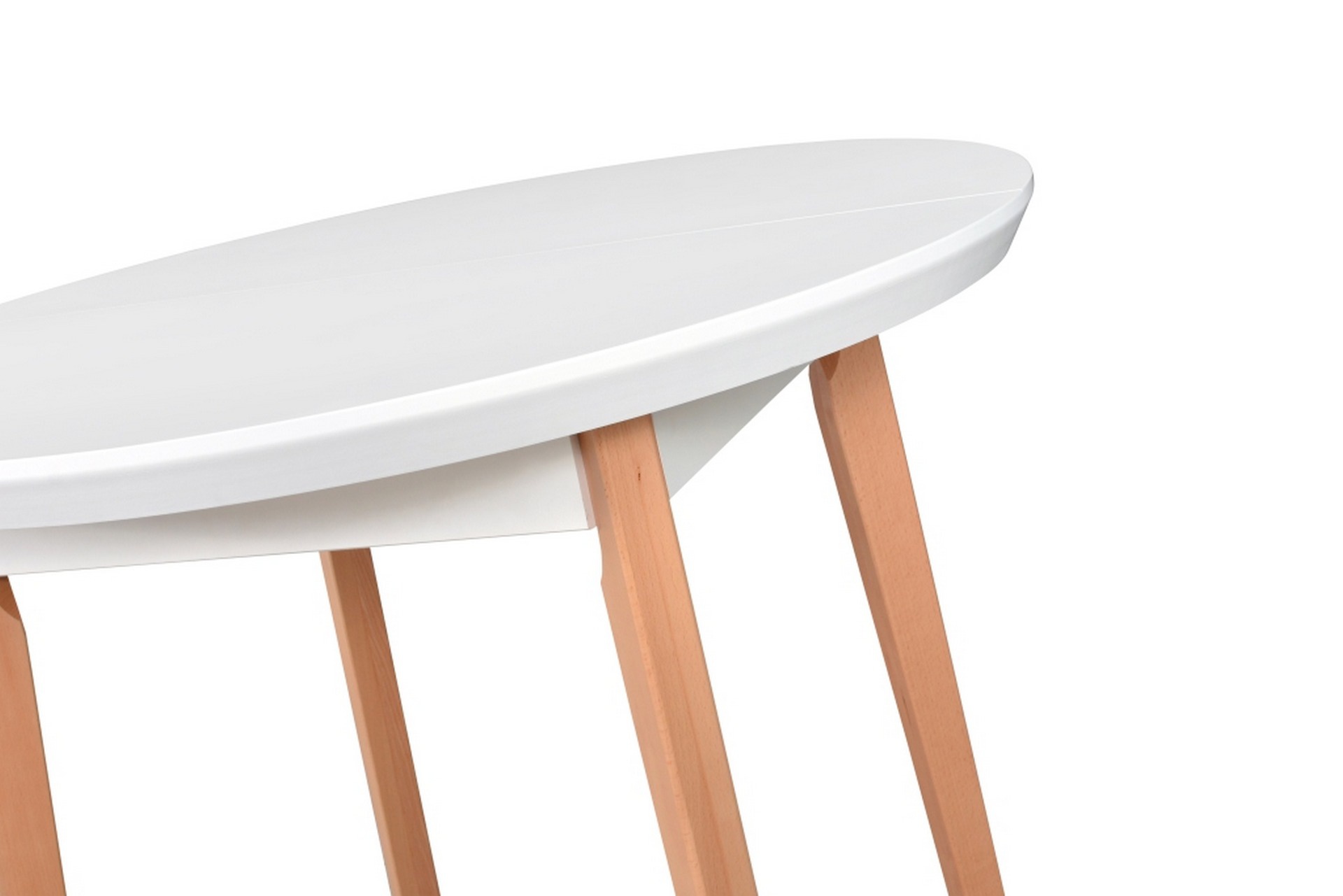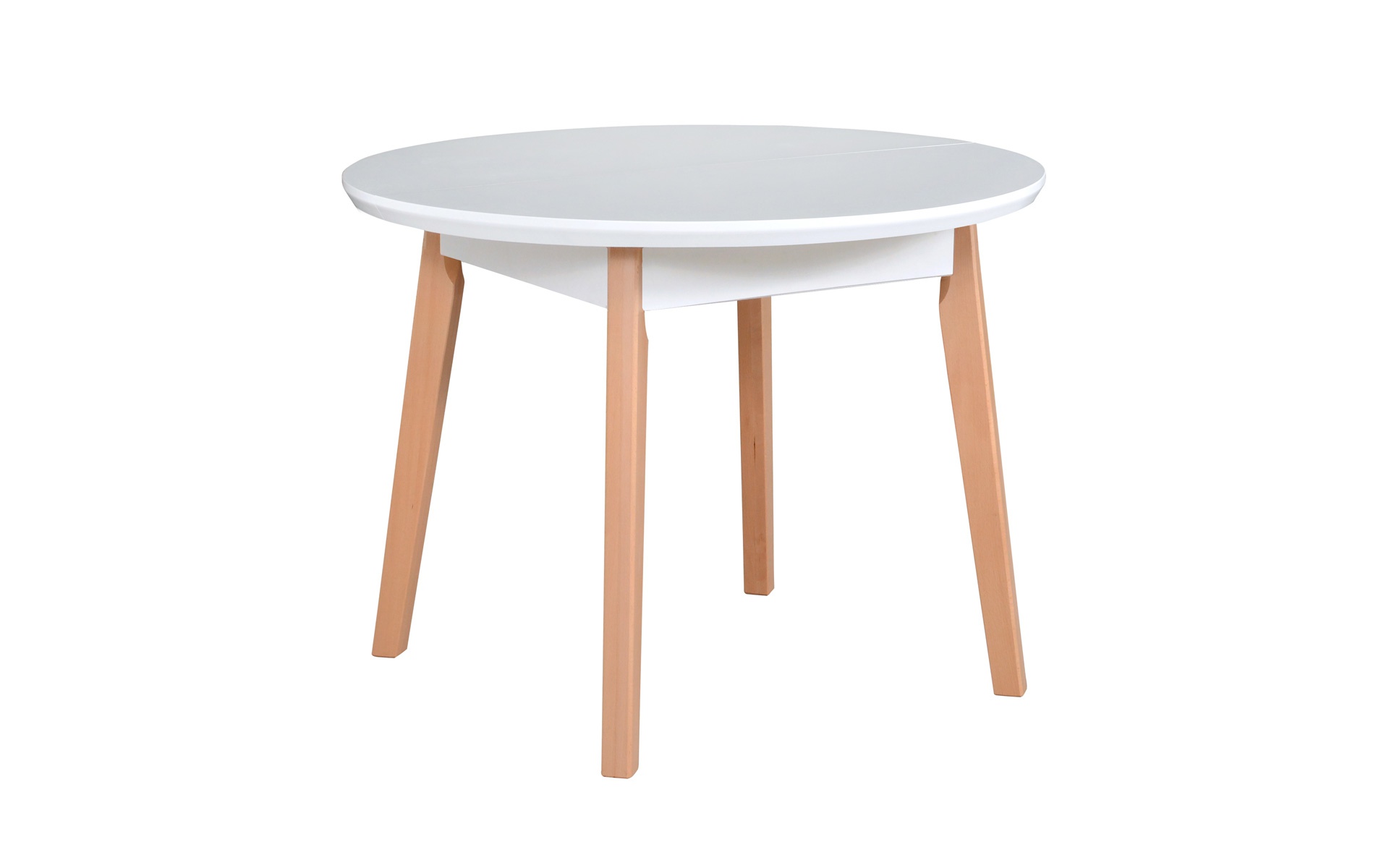 Jídelní rozkládací stůl je vyroben z materiálu: nohy jsou z bukového dřeva, deska stolu je v barvě bílá z MDF lak tl.32 mm, stůl lze vybrat v dezénu dle nabídky. Jídelní stůl je stabilní a pevný. Tento klasický jídelní stůl je vhodný do domácnosti i restaurace. Zboží dodáváme v demontu.