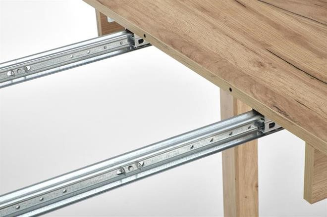 Moderní rozkládací jídelní stůl je vyroben z kvalitní desky dýhované v dezénu dub craft. Lze ho rozložit do délky 142 cm. Osvěžte svůj interiér tímto jídelním stolem. Židle nejsou součástí, foto je pouze ilustrační. Zboží dodáváme v demontu.