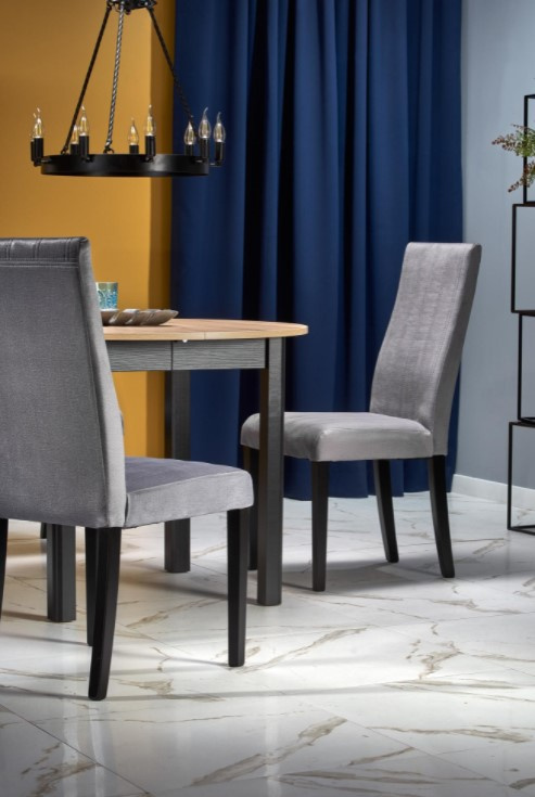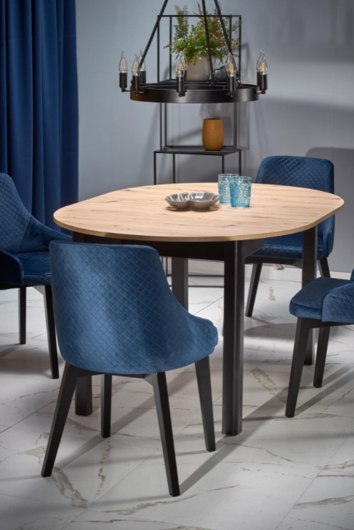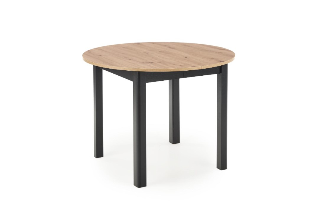 Kulatý rozkládací stůl RUBEN ozdobí každou místnost. Deska je vyrobena z dýhované MDF v dezénu dub artisan, nohy jsou v černé barvě. Židle nejsou součástí stolu. Zboží je dodáváno v demontu.