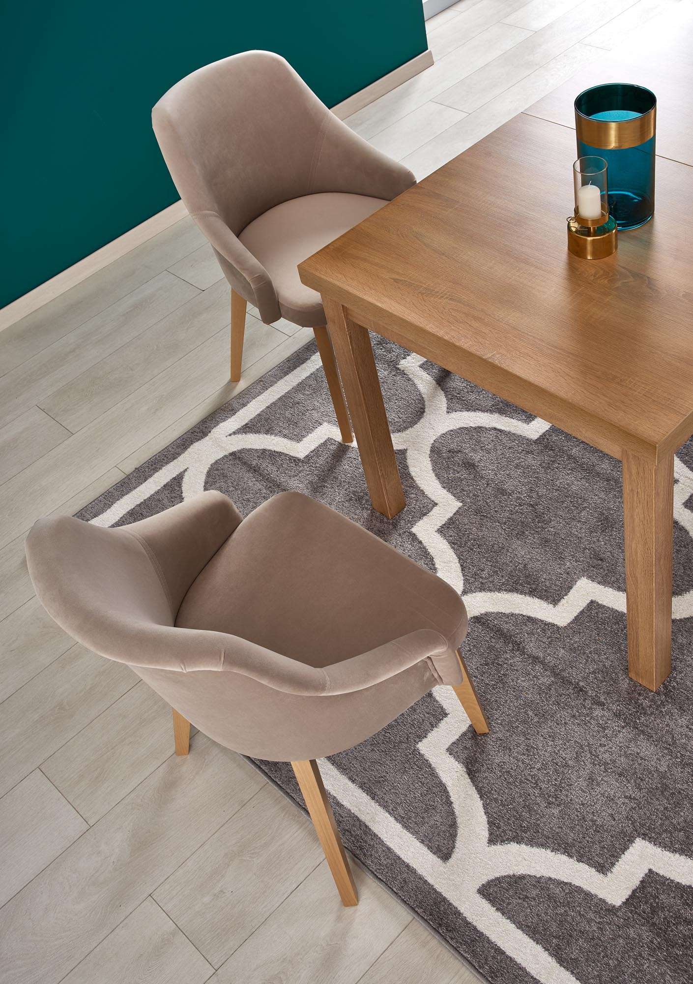 Moderní rozkládací stůl v barvě deska stolu dub craft, nohy dub craft se hodí do každé jídelny nebo kuchyně. Deska stolu je vyrobena z MDF lamina s ABS hranami, nohy jsou také z MDF lamina. Židle na fotu nejsou součástí produktu. Zboží je dodáváno v demontu.