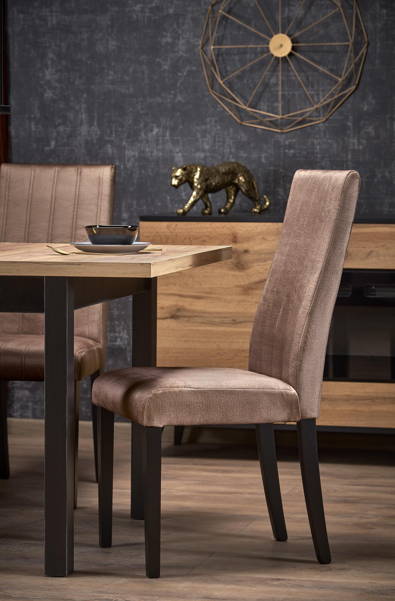 Jídelní stůl rozkládací je vyroben z materiálu MDF laminát s ABS v barvě deska dub craft a nohy černá . Jídelní židle nejsou součástí. Zboží dodáváme v demontu.