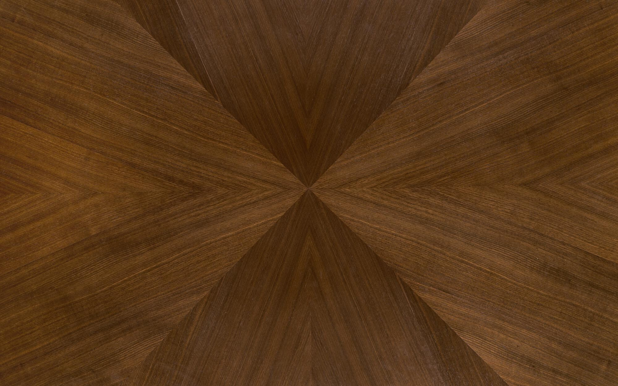 Oválný stůl s mohutnou podnoží v dekoru ořechového dřeva. Stůl je vyroben v kombinaci MDF desky a dýhy.