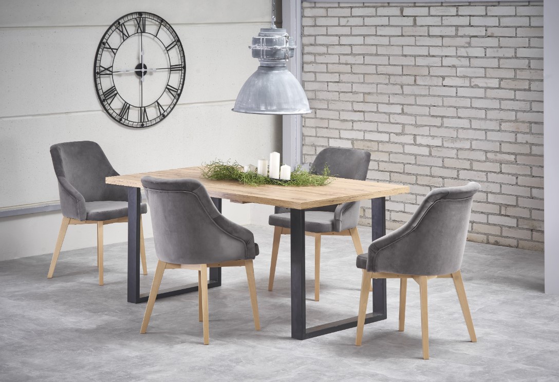 Rozkládací jídelní stůl VENOM se hodí do malé i velké jídelny. Po rozložení k němu posadíte i velkou rodinu. Deska stolu je vyrobena z lamina v barvě dub wotan s ABS hranami. Nohy jsou z černé práškované oceli. Židle nejsou součástí stolu. Zboží je dodáváno v demontu.