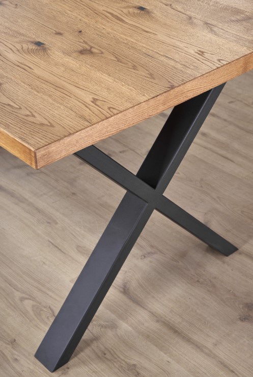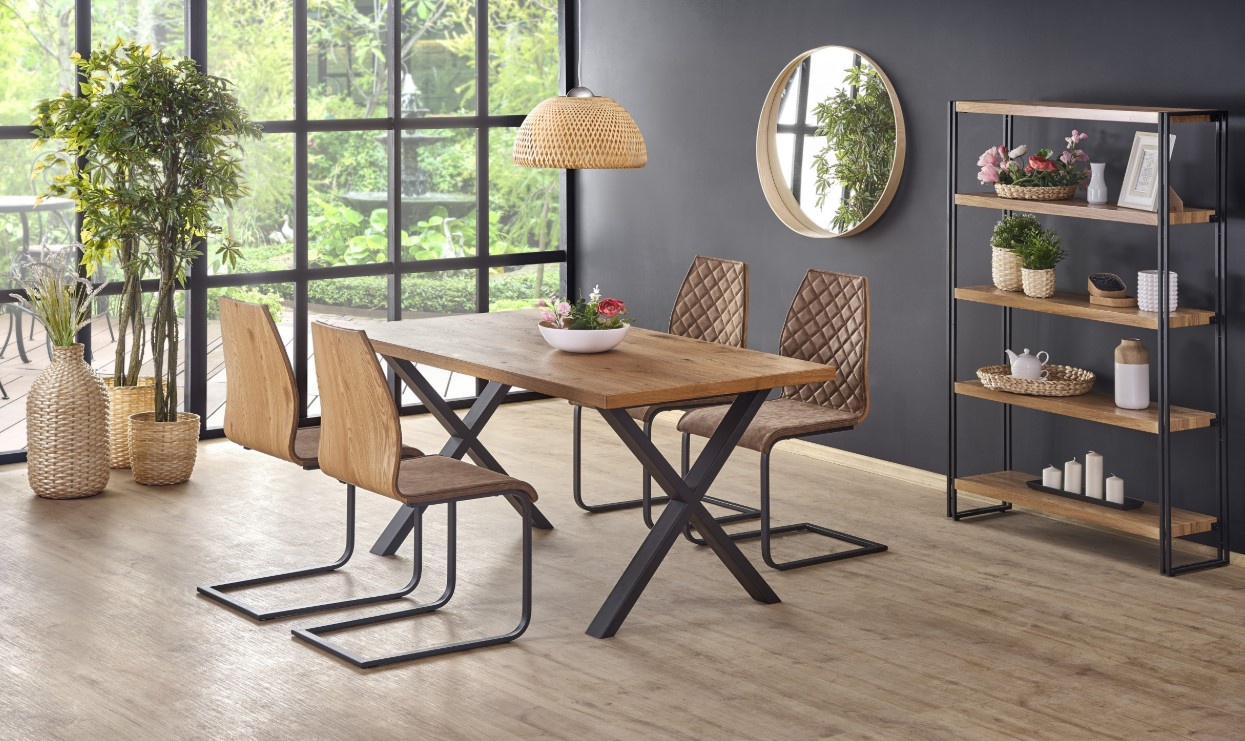 Velký rozkládací stůl XAVIER bude ozdobou každé jídelny. Po rozložení k němu posadíte početnou rodinu nebo skupinu přátel. Deska stolu je dýhovaná v provedení světlý dub, na okrajích masivní dřevo. Nohy jsou z práškované oceli v barvě černé. Židle nejsou součástí stolu. Zboží je dodáváno v demontu.