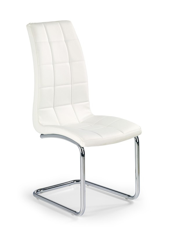 Velice elegantní jídelní židle je vyrobena v kombinaci materiálů, kovové podnoží z chromované oceli, sedák a opěrák jsou čalouněny bílou eko kůží. Zboží dodáváme v demont