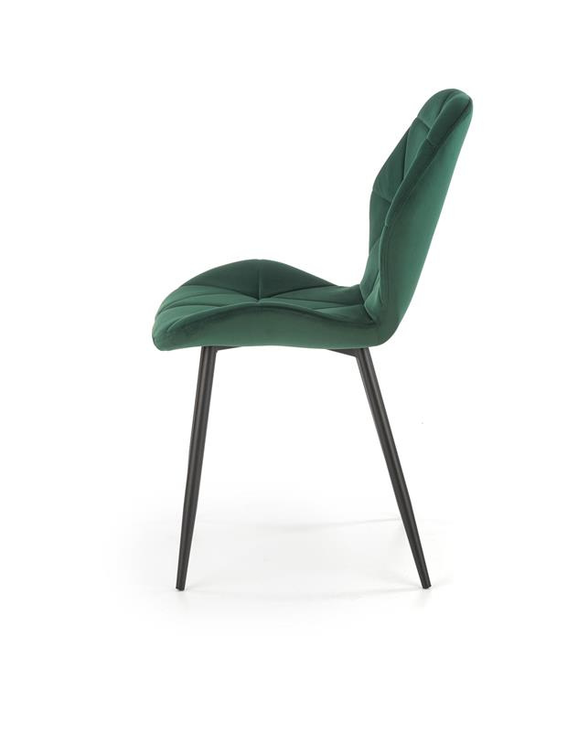 Moderní jídelní židle je vyrobena v tmavě zelené látce velvet. Nohy jsou z černé práškované oceli. Maximální nosnost 100 kg. Zboží dodáváme v demontu.