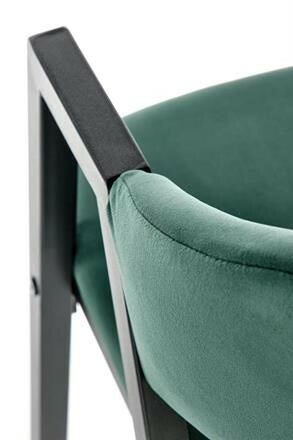 Moderní jídelní židle je vyrobena v tmavě zelené látce velvet. Nohy jsou z práškované oceli ve černé barvě. Maximální nosnost 100 kg. Zboží dodáváme v demontu.
