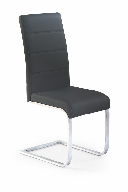 Elegantní jídelní židle je vyrobena v kombinaci materiálů, kovové pohupové podnoží z oceli chromované, sedák a opěrák je čalouněný praktickou Eko kůží v černé barvě. Max. nosnost 120kg. Zboží je dodáváno v demontu.