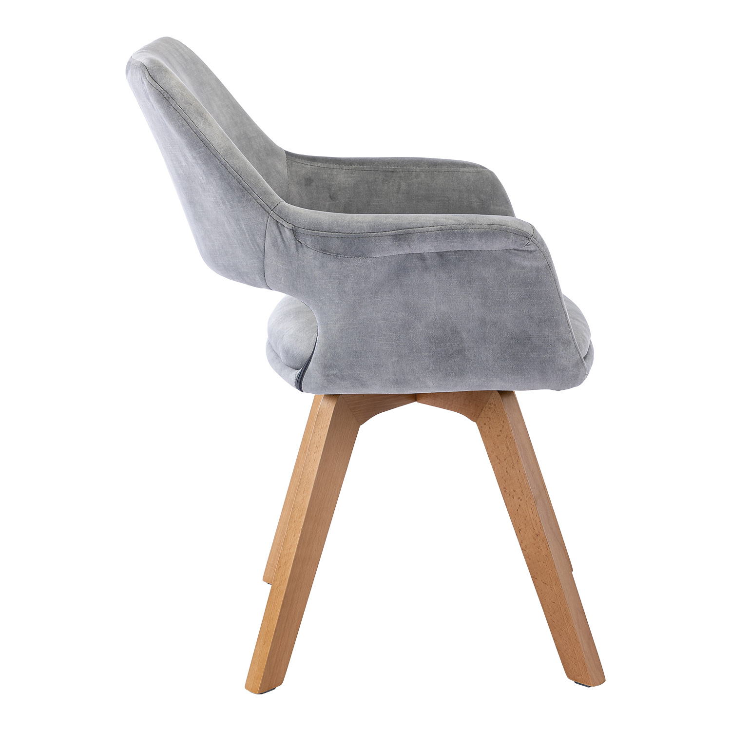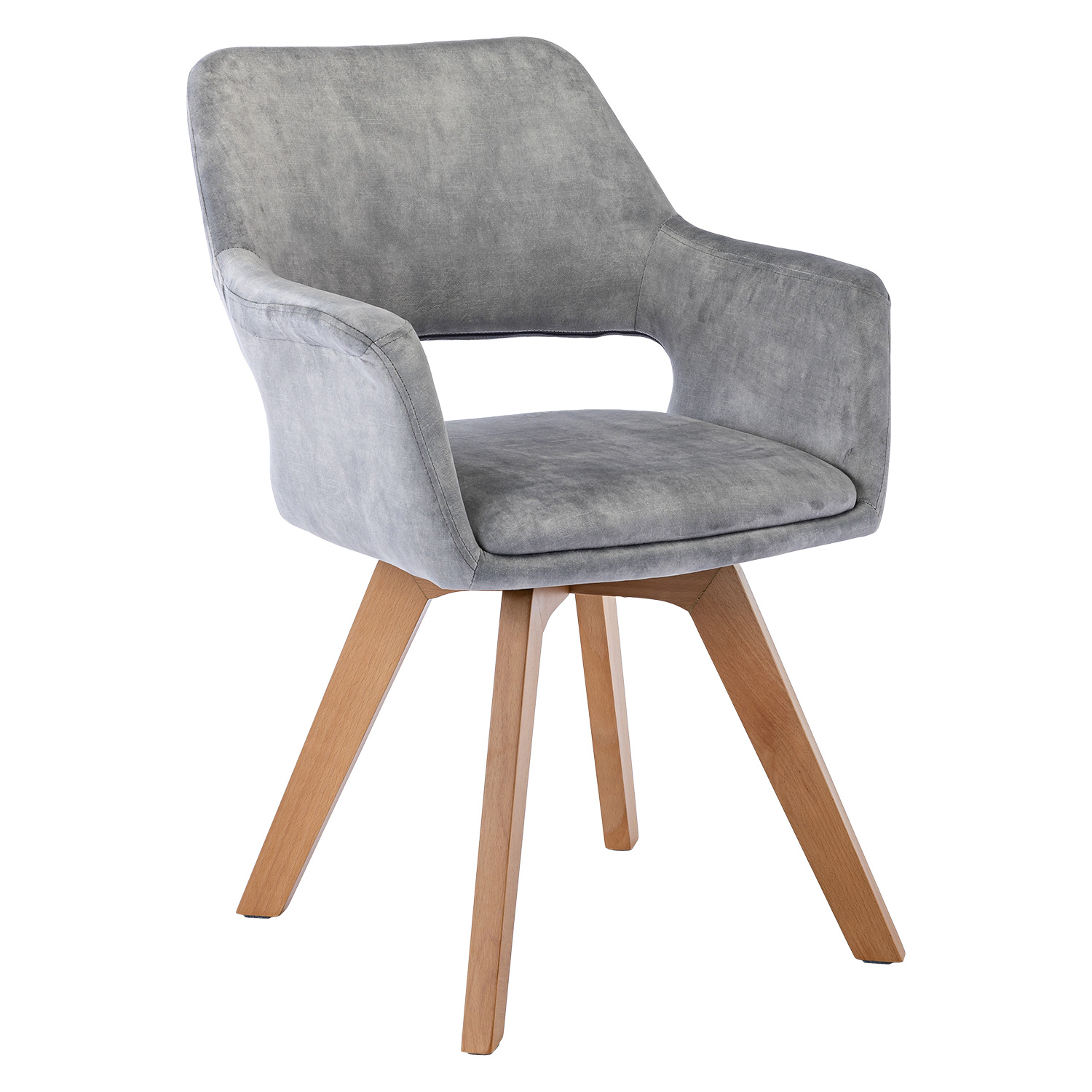 textilní potah, barevné provedení světle šedá nohy masiv buk, lakované provedení otočná o 360 stupňů výška sedu 47 cm doporučená nosnost do 120 kg