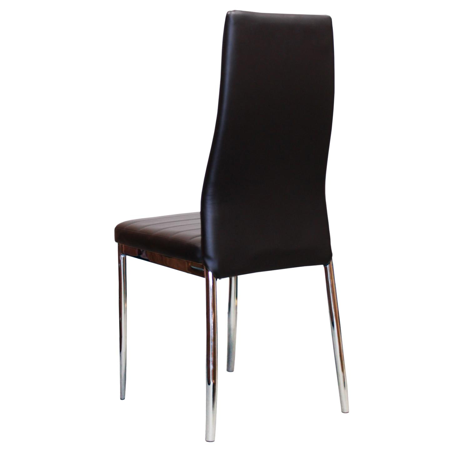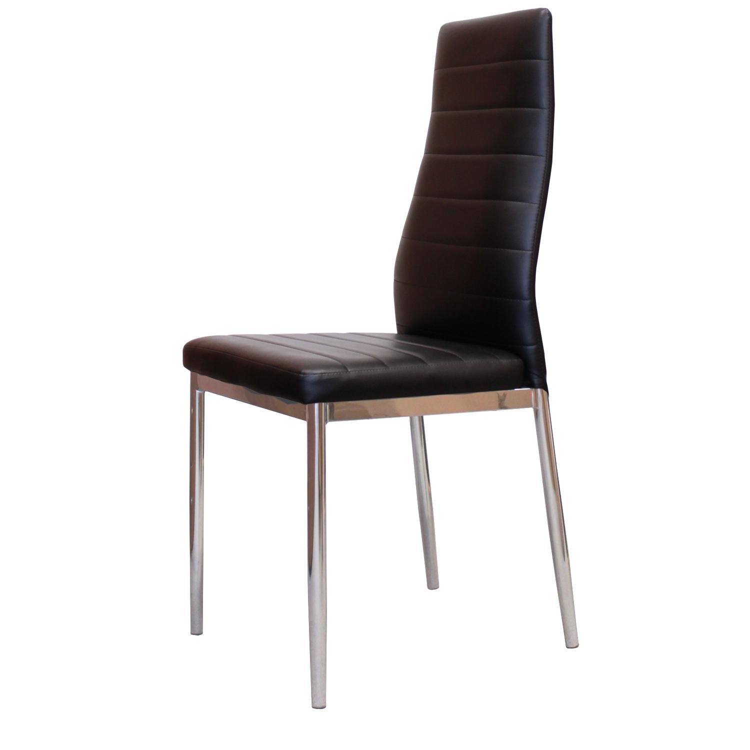 Stylová jídelní židle Miláno se díky svému nadčasovému vzhledu hodí do každé kuchyně. Kostra židle je vyrobena z pochromovaného kovu, sedák a opěrák je čalouněný černým potahem, imitace kůže. Židle jsou balené v krabici po 4 kusech, cena je uvedená za 1 kus. Židle nejsou vhodné do společenských prostorů.
