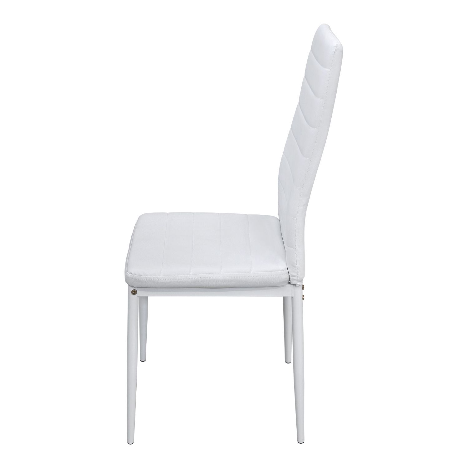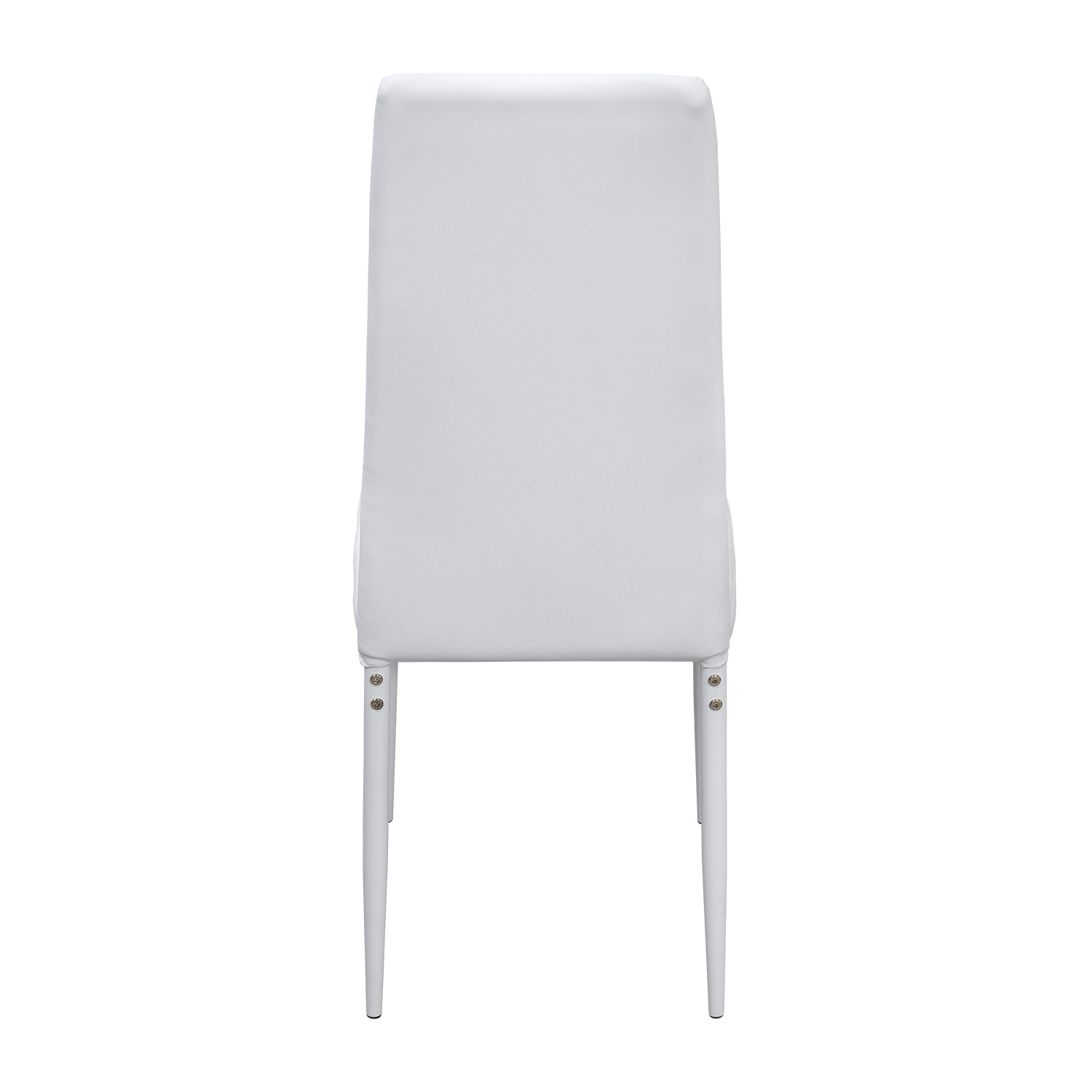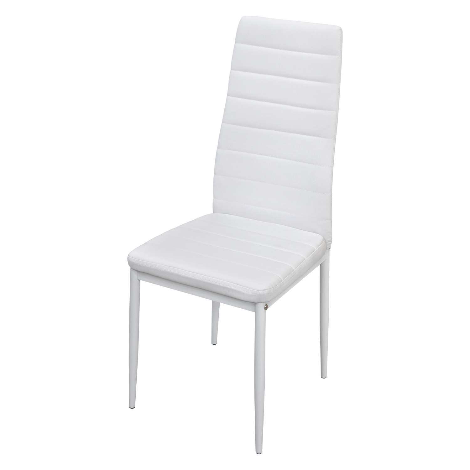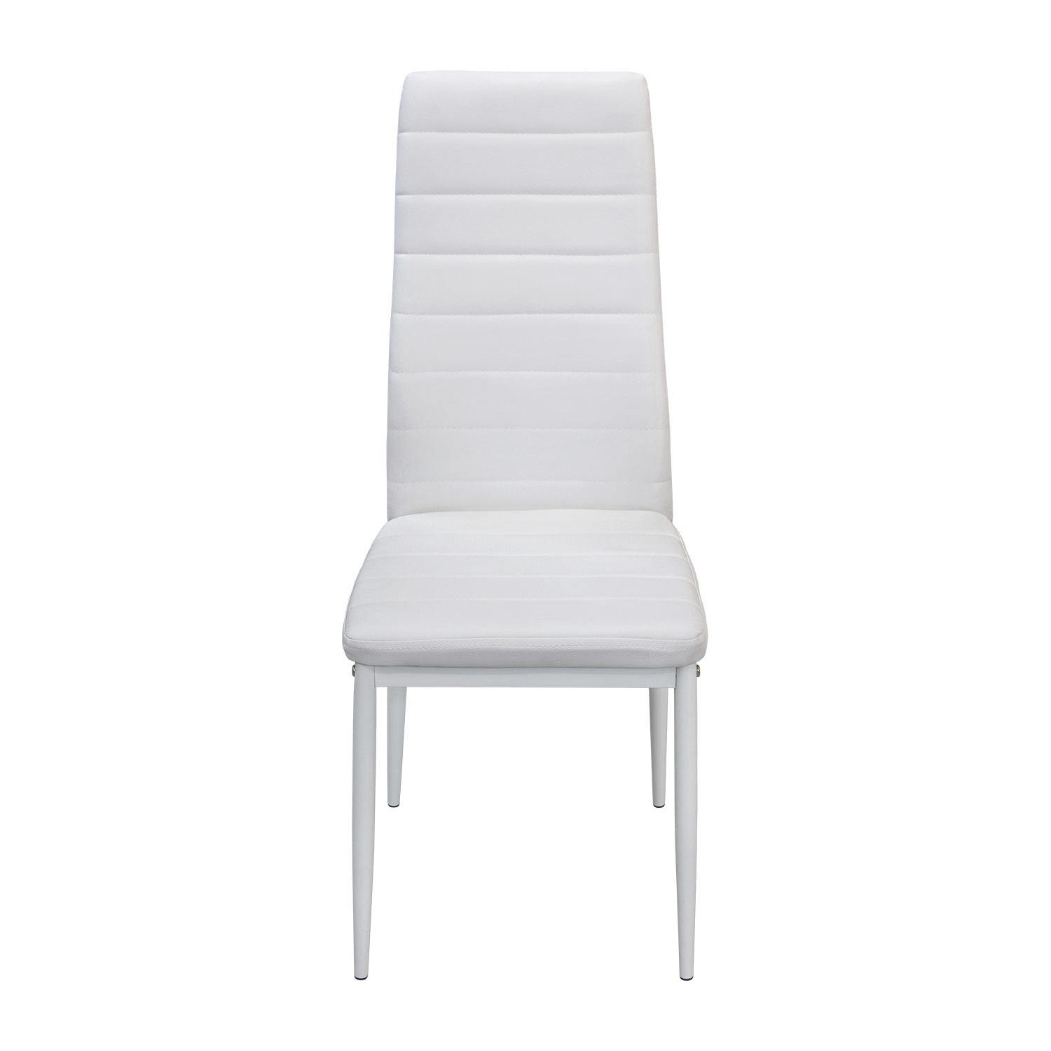 Jídelní židle má potah imitaci kůže v barevném provedení bílá. Kontrukce a nohy jsou kovové. Výška sedu 47 cm.