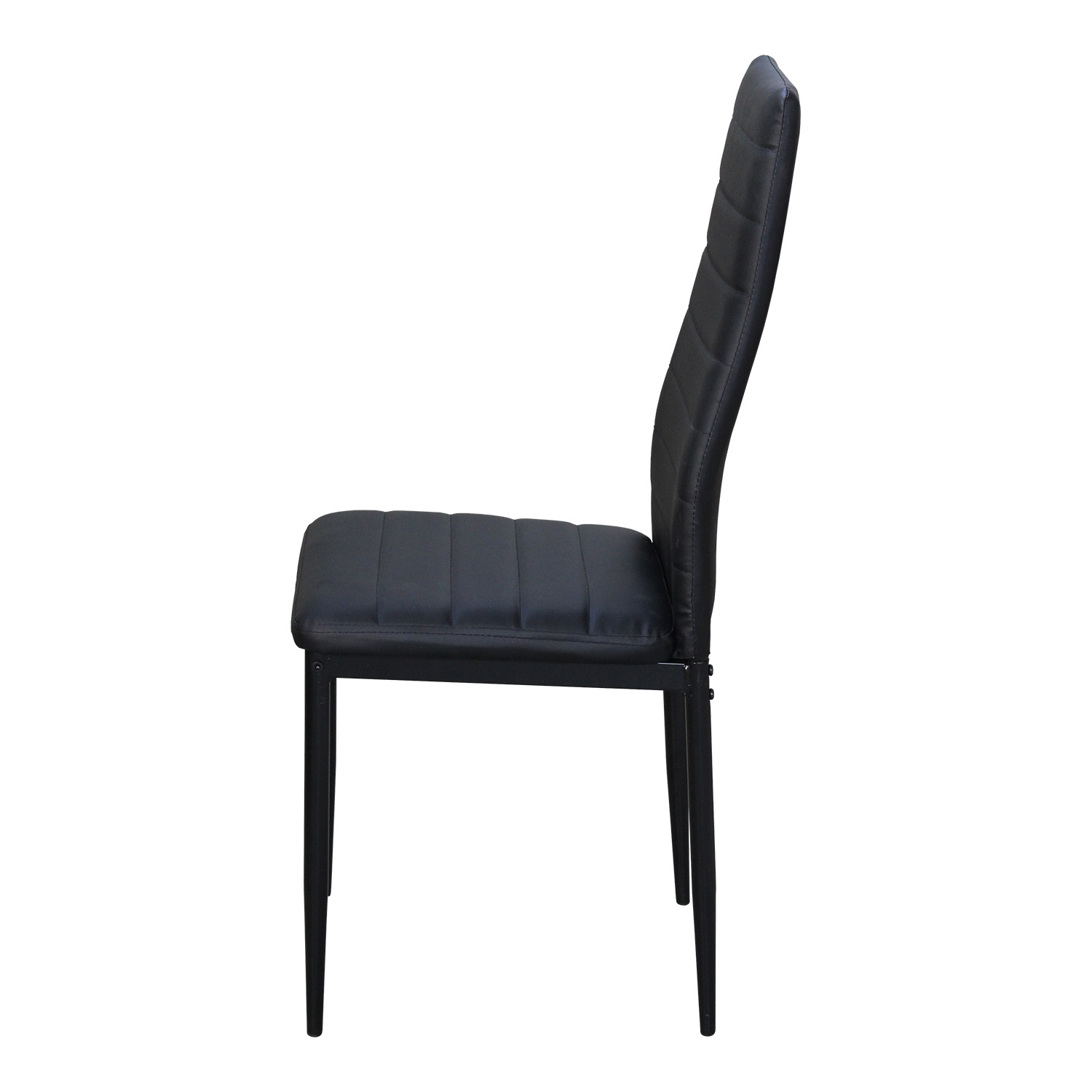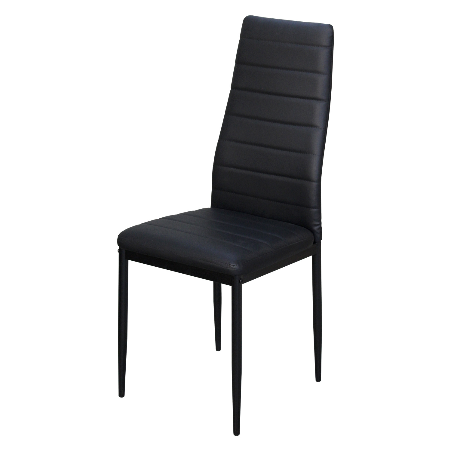 Jídelní židle kovové konstrukce v barevném provedení černá. Potah kůže-imitace v barevném provedení černá. Výška sedu 47 cm.