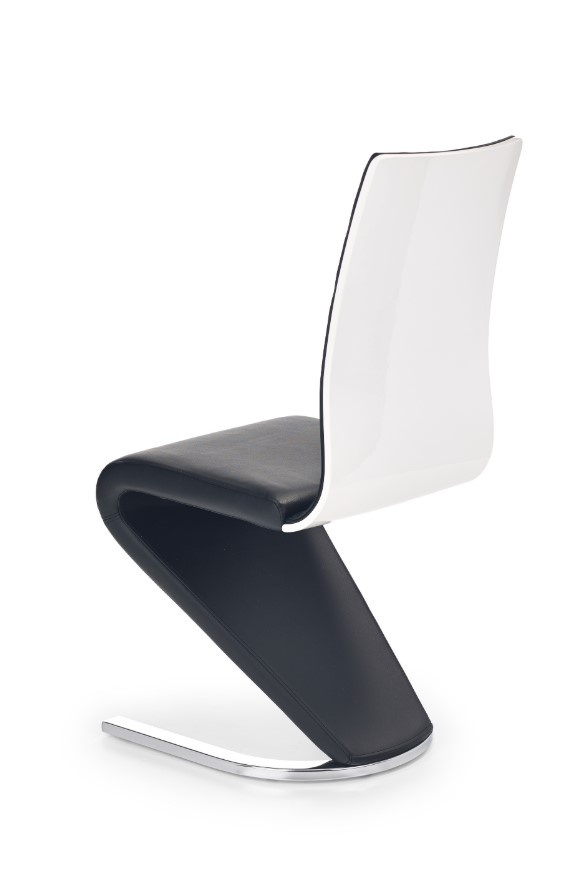 Designová jídelní židle je vyrobena z chromované oceli, lakované překližky v barvě bílé a eko kůže v černé barvě. Max. nosnost 130kg. Zboží je dodáváno v