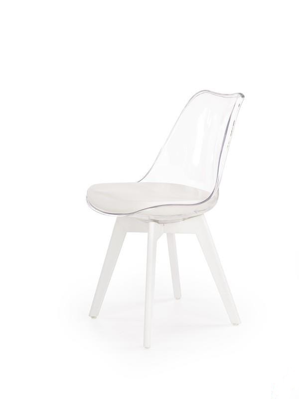 Designová jídelní židle je vyrobena v kombinaci materiálu polypropylen a polykarbonát. Židle má velice moderní průhledný opěrák a čalouněný sedák v bílé eko kůži. Maximální nosnost 100 kg. Zboží je dodáváno v demontu.