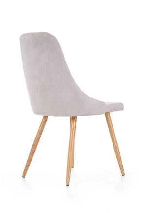 Elegantní jídelní židle v oblíbeném retro stylu je čalouněná světle šedou tkaninou, opěrka je prošívaná. Nohy z lakované oceli celkově dotváří velice příjemný design. Židle se hodí do domácností, ale také restaurací, penzionů, čekáren apod. Maximální nosnost 120 kg. Zboží je dodáváno v demontu.