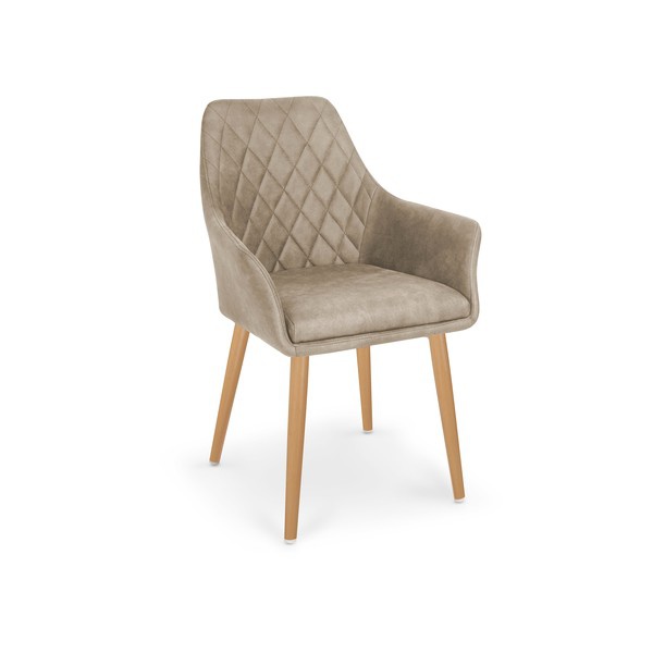 Pohodlná jídelní židle v oblíbeném retro stylu je čalouněná v béžové eko kůži, široký prošívaný opěrák zajistí dostatečné pohodlí. Nohy z lakované oceli dotváří celkový příjemný design. Židle se skvěle hodí jako polokřeslo do čekáren, restaurací, penzionů, ale také do domacností. Maximální nosnost 120 kg. Zboží je dodáváno v demontu.