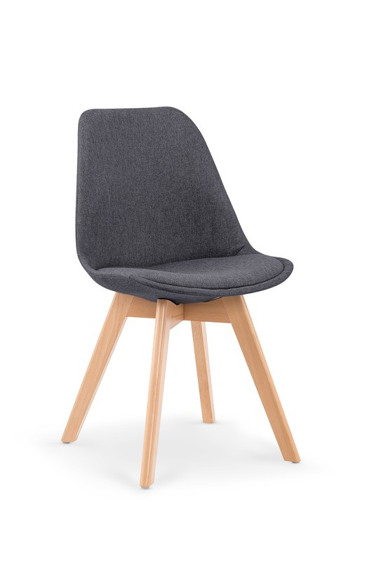 Klasická, ale velmi elegantní jídelní židle zaujme svým moderním designem. Opěrák a sedák jsou čalouněny tmavě šedou tkaninou, podnoží je z masivního světlého dřeva. Maximální nosnost 120kg. Zboží je dodáváno v demontu.