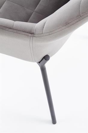 Moderní čalouněná židle v šedé potahové látce doplněná o kovové nohy z oceli malované práškové v barvě šedá. Maximální nosnost 120kg. Zboží dodáváme v demontu.