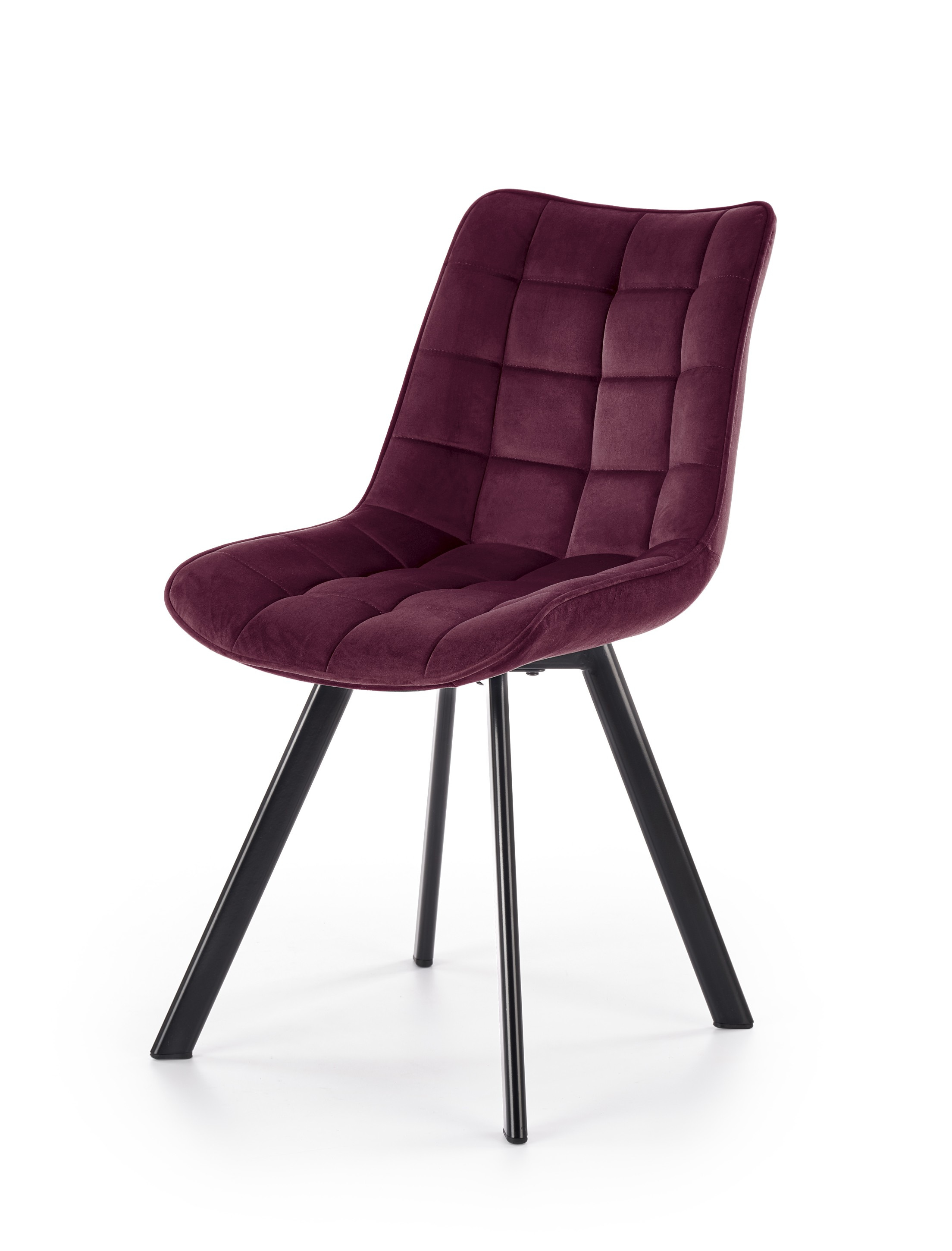 Jídelní židle má nohy z práškované ocele v barvě černá. Sedák a opěradlo je potaženo sametovou látkou v barvě bordó. Maximální nosnost je 100 kg. Zboží dodáváme v demontu.