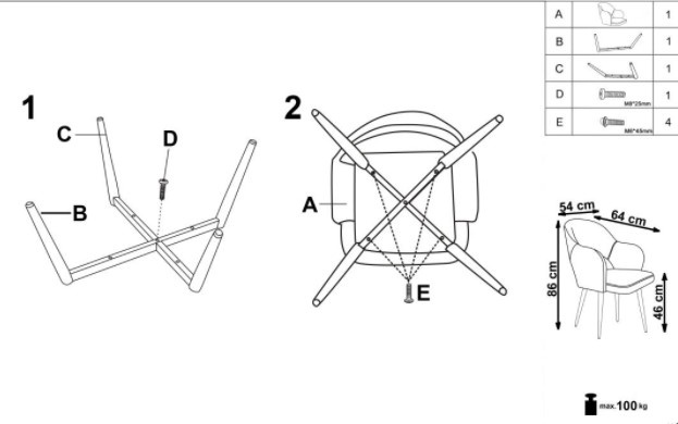 Jídelní židle je vyrobena z materiálu nohy: prášková ocel, sedák: látka v barevném provedení tmavě šedá. Zboží dodáváme v demontu.