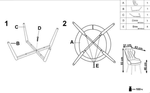 Jídelní židle je vyrobena z materiálu nohy: prášková ocel v barvě černá, sedák: látka v barevném provedení vínová. Zboží dodáváme v demontu.