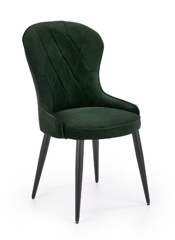 Jídelní židle je vyrobena z materiálu nohy: prášková ocel v barvě černá, sedák: látka v barevném provedení tmavě zelená. Zboží dodáváme v demontu.
