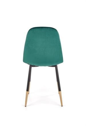 Jídelní židle je vyrobena z materiálu nohy: prášková ocel v barevném provedení černá/zlatá, sedák: látka v barevném provedení tmavě zelená.