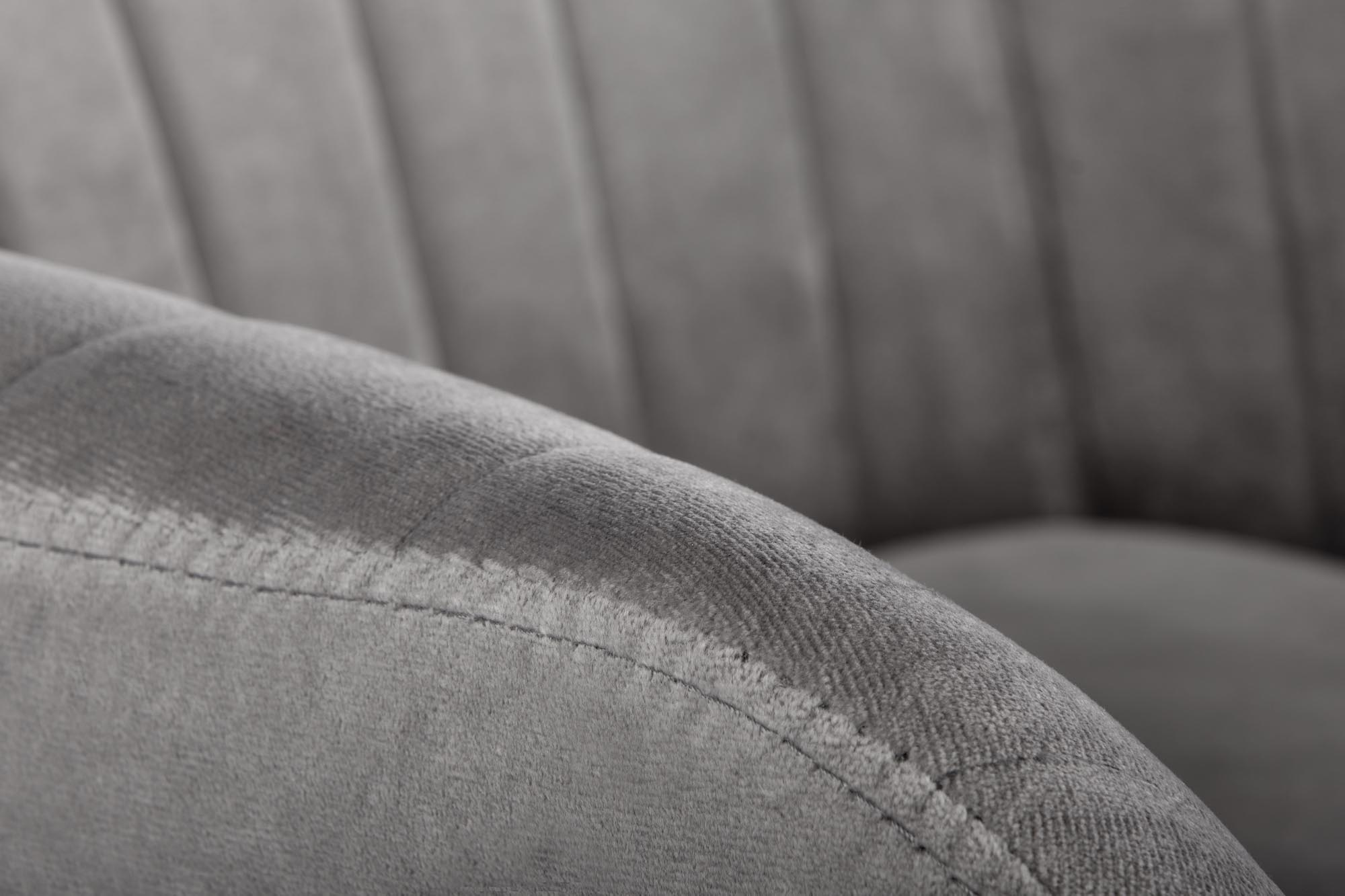 Moderní jídelní židle s elegantním prošíváním je vyrobené z práškově lakované oceli v černé barvě a čalouněné šedou sametovou látkou. Křeslo se pyšní silným podsedákem pro maximální pohodlí a praktickými područkami.
