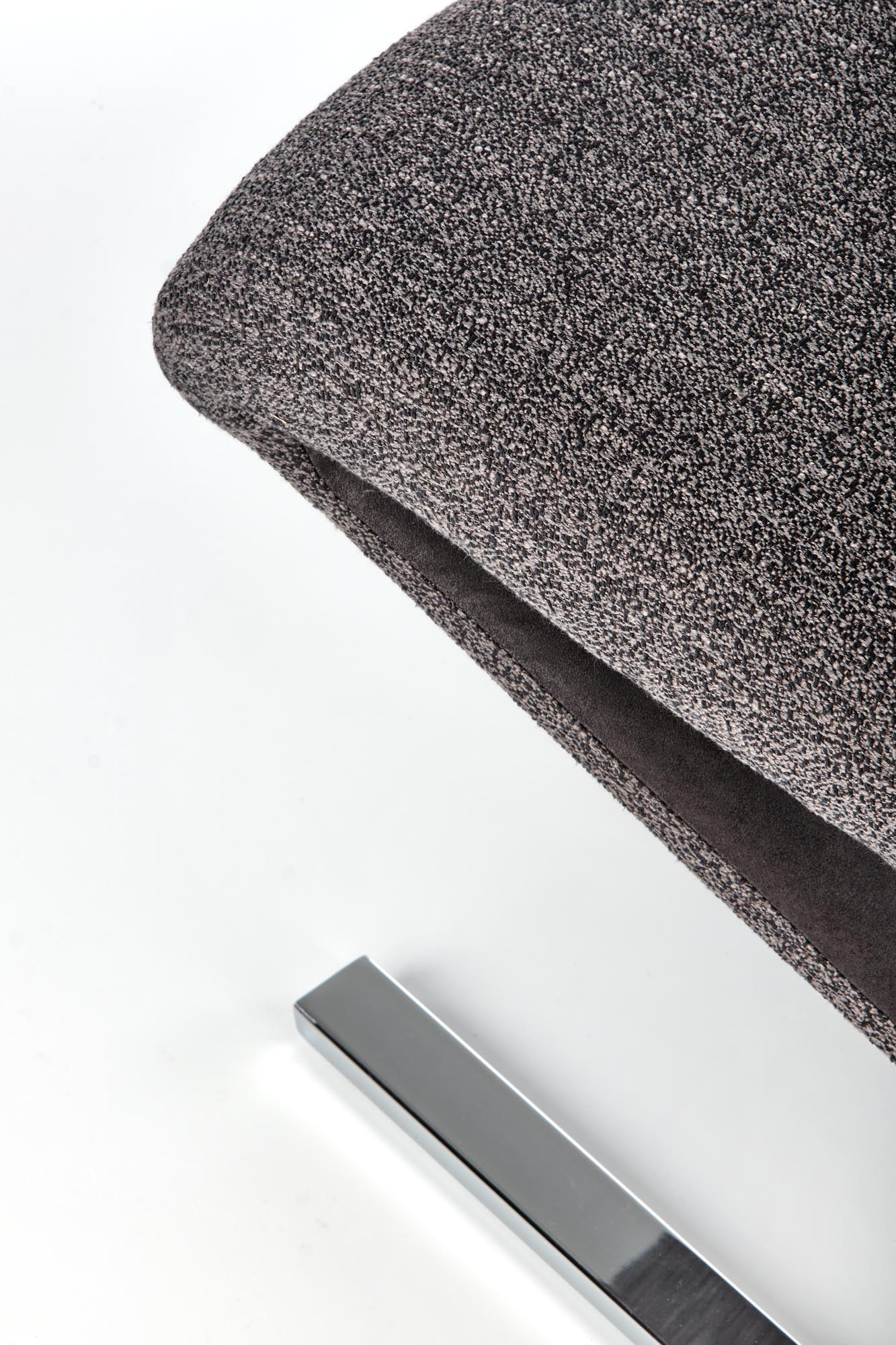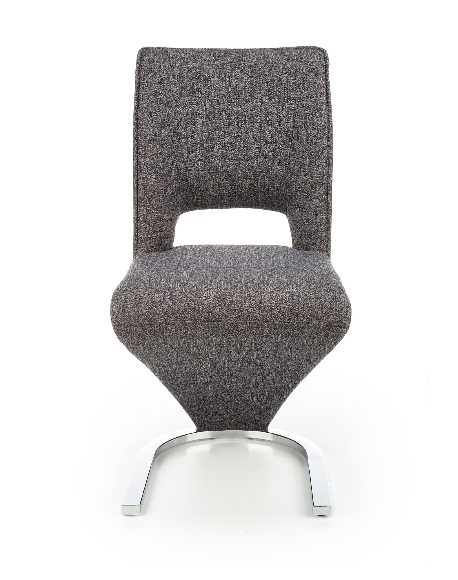 Stylová jídelní židle K442 je čalouněna sametovou látkou v barvě šedá. Stojí na designové pohupovací podnoži z ocele lakované černou barvou. Židle má vysokou zádovou opěrku pro maximálně pohodlné sezení.