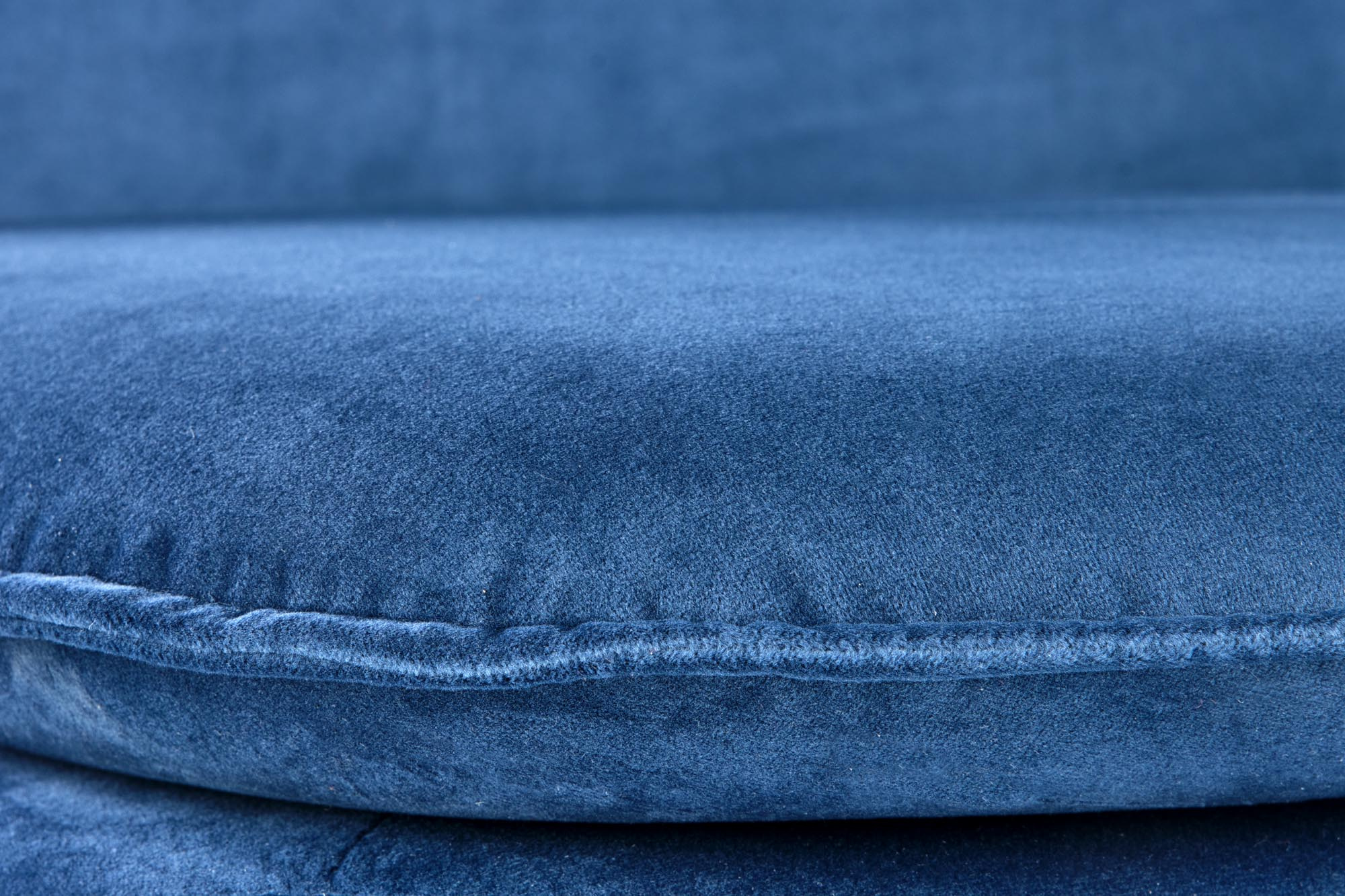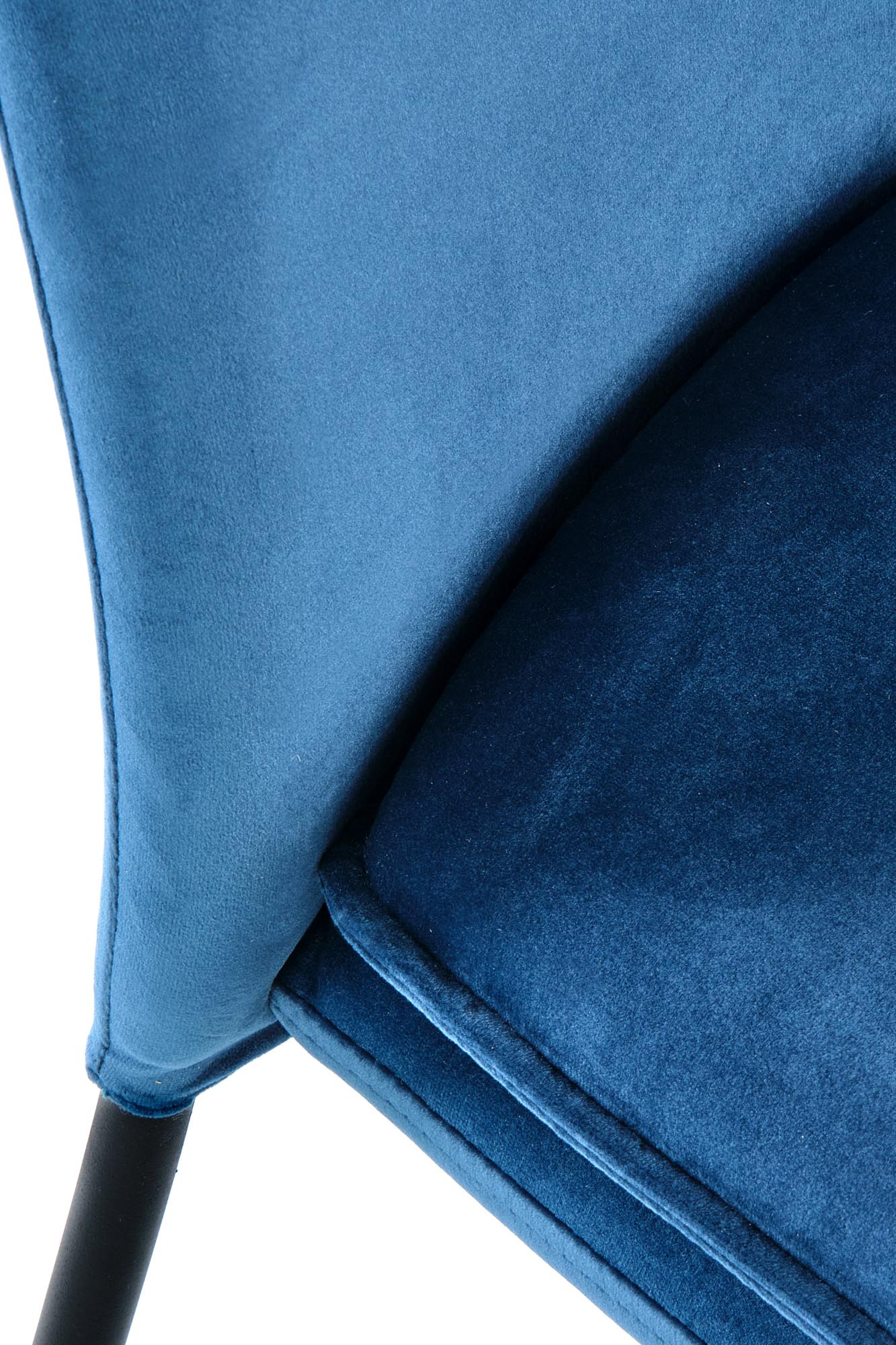 Jídelní židle K443 je čalouněna tmavě modrou sametovou látkouStojí na čtyřech ocelových nohách lakovaných černou barvou. Židle poskytuje maximálně pohodlné sezení díky silně polstrovanému sedáku.