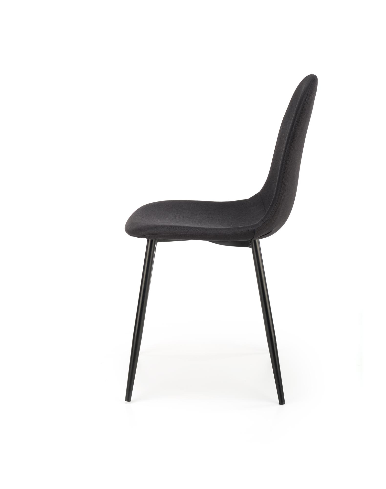 Židle má opěradlo a sedák čalouněný příjemnou látkou v barevném provedení: černá. Stabililtu zajišťují čtyři ocelové nohy v černé barvě.