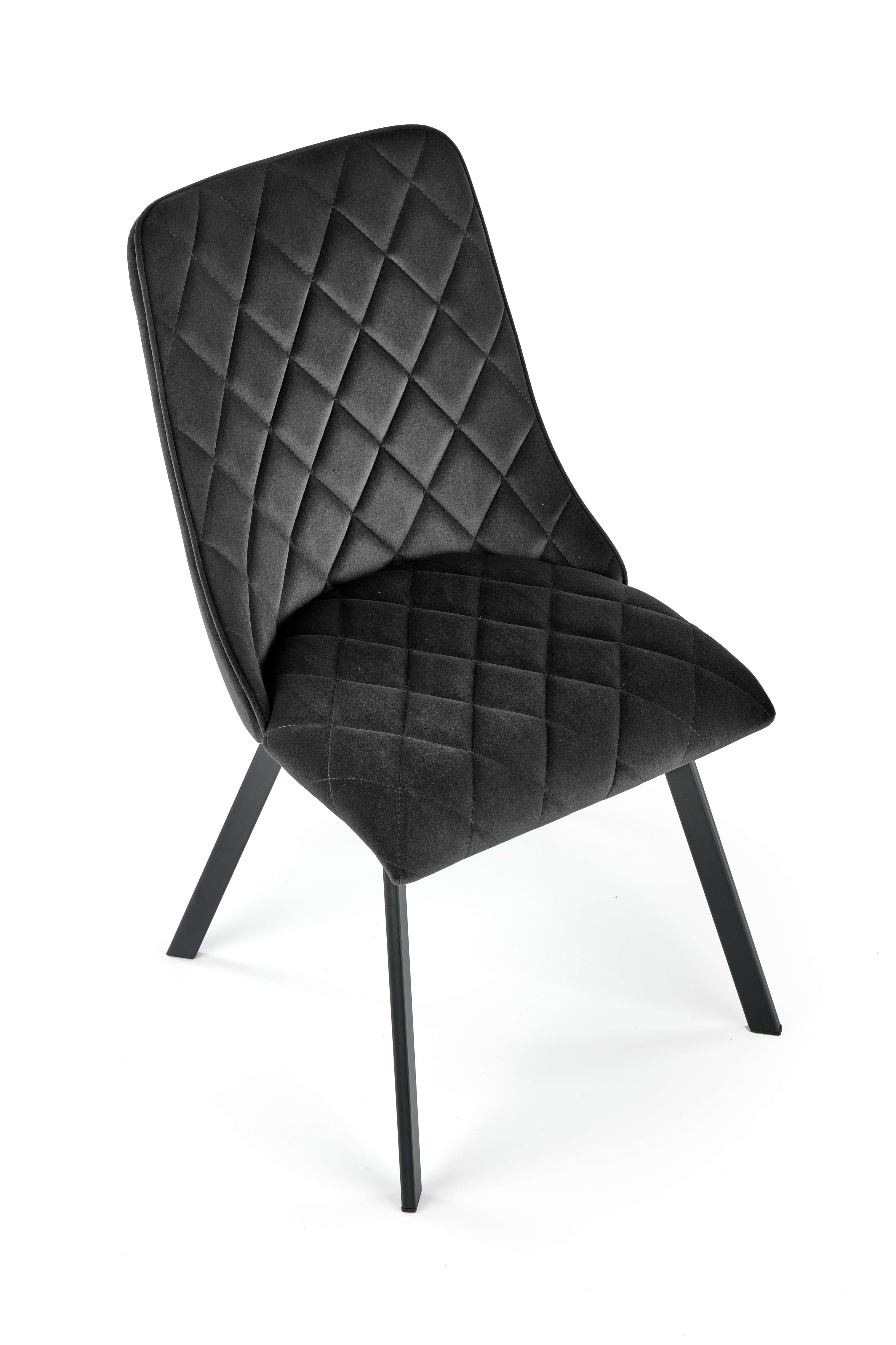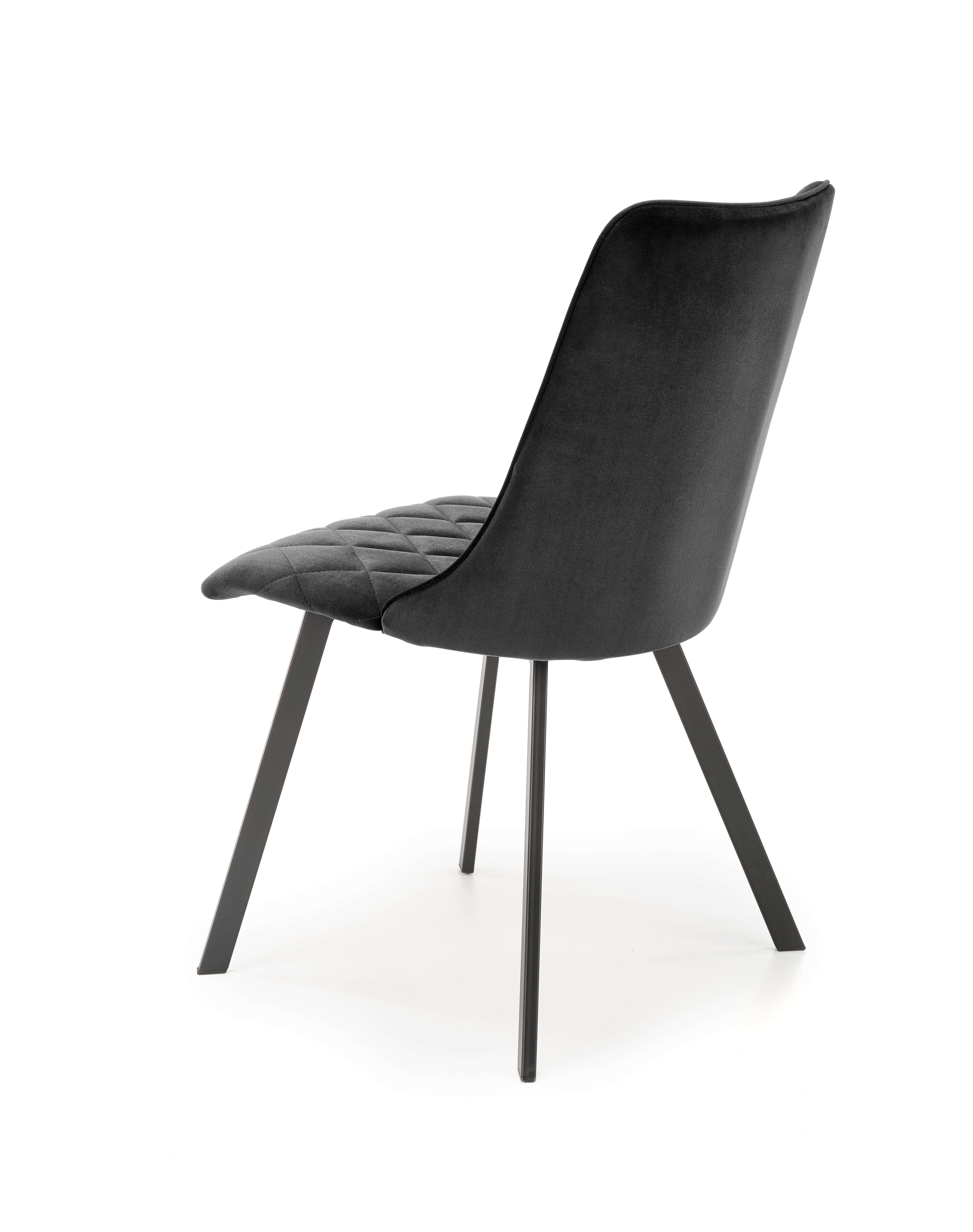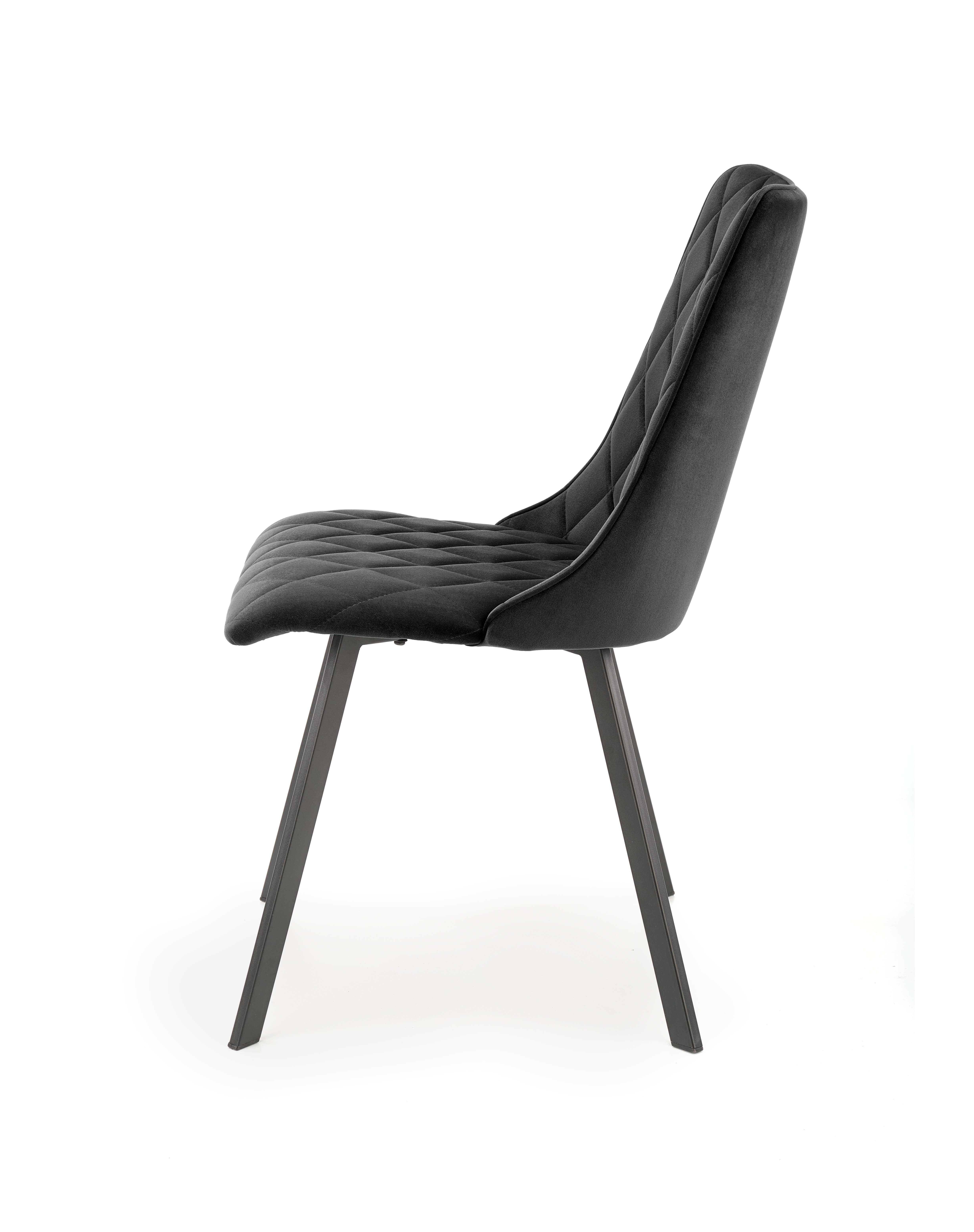 Moderní jídelní židle je vyrobena v černé látce velvet. Nohy jsou z černé práškované oceli. Maximální nosnost 100 kg. Zboží dodáváme v demontu.