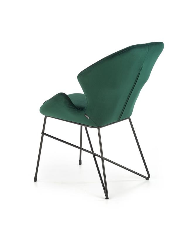 Originální jídelní židle bude ozdobou každé kuchyně či jídelny. Moderní jídelní židle je vyrobena v tmavě zelené látce velvet. Nohy jsou z černé práškované oceli. Tato židle Vás zaujme svým nápaditým designem a je vhodná do všech interiérů. Zboží dodáváme v demontu.