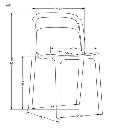 Jídelní židle K490 je vyrobená z odolného polypropylenu v mátové barvě. Díky použitému materiálu se židle velmi snadno čistí. Maximální nosnost 100 kg. Židle je snadno stohvatelná a je vhodná do interiéru i exteriéru.