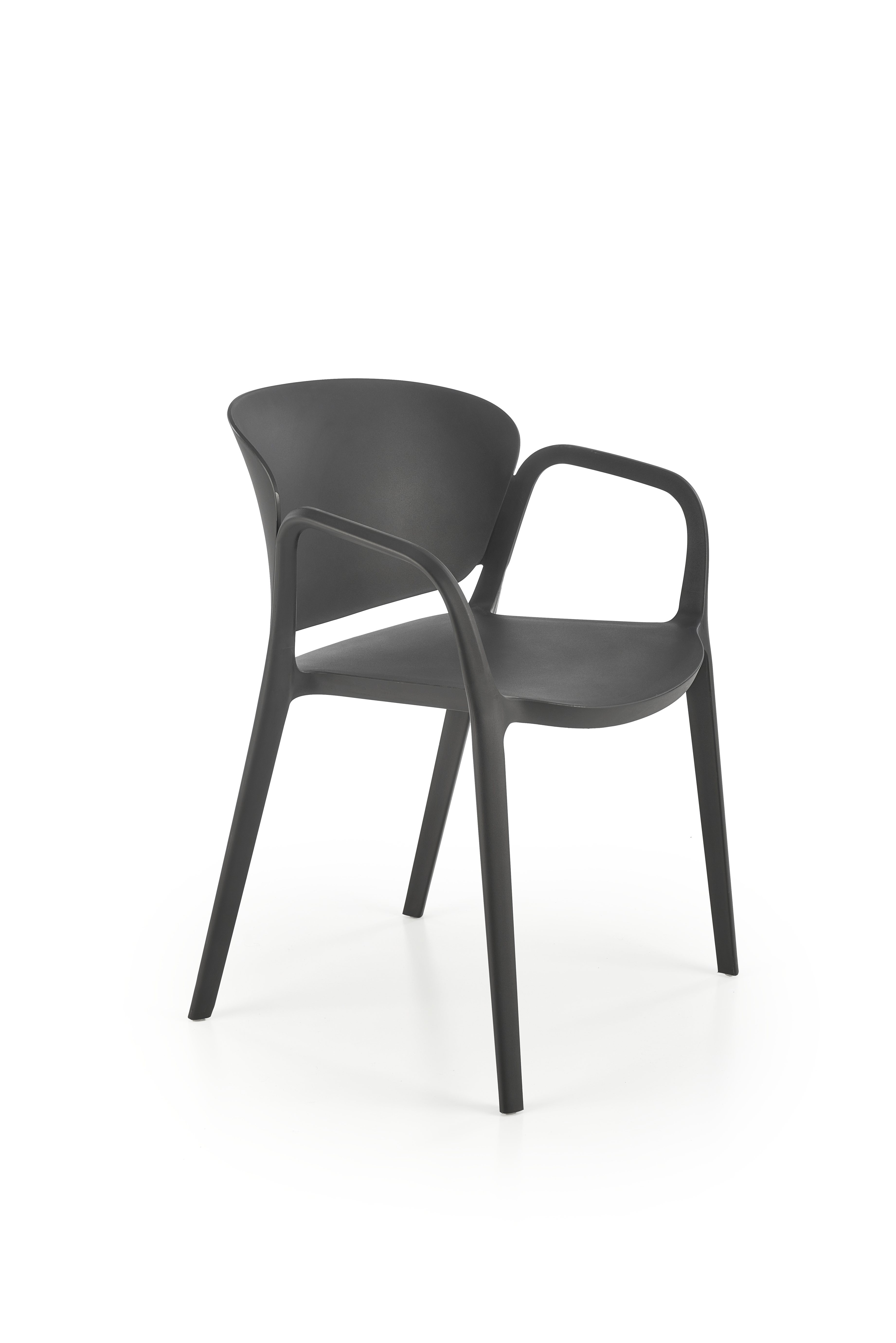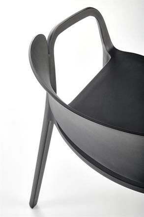 Jídelní židle K491 je vyrobená z odolného polypropylenu v černé barvě. Díky použitému materiálu se židle velmi snadno čistí. Maximální nosnost 100 kg. Židle je snadno stohvatelná a je vhodná do interiéru i exteriéru.