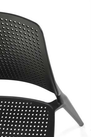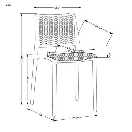 Jídelní židle K514 je vyrobená z odolného polypropylenu v černé barvě. Díky použitému materiálu se židle velmi snadno čistí. Maximální nosnost 100 kg. Židle je snadno stohovatelná a je vhodná do interiéru i exteriéru.