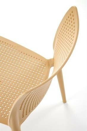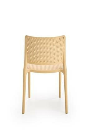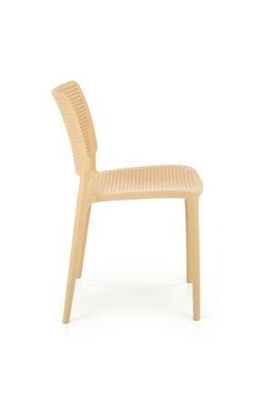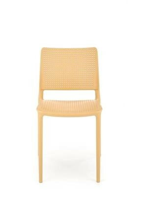 Jídelní židle K514 je vyrobená z odolného polypropylenu v oranžové barvě. Díky použitému materiálu se židle velmi snadno čistí. Maximální nosnost 100 kg. Židle je snadno stohovatelná a je vhodná do interiéru i exteriéru.