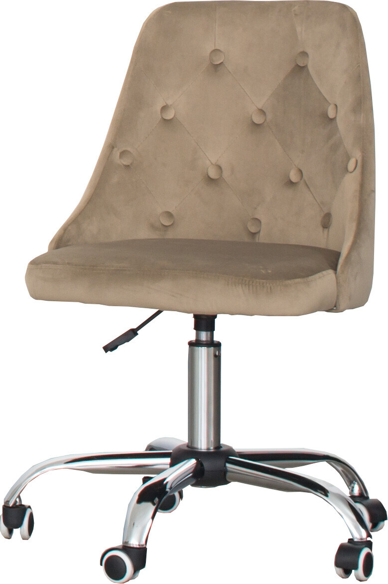 Moderní výškově nastavitelné, otočné křeslo. Elegantní čalouněné sedadlo je v dezénu dle výběru. Konstrukce židle je pochromovaná a kolečka jsou nylonová. Maximální nosnost židle je 120 kg. Zboží dodáváme v demontu.