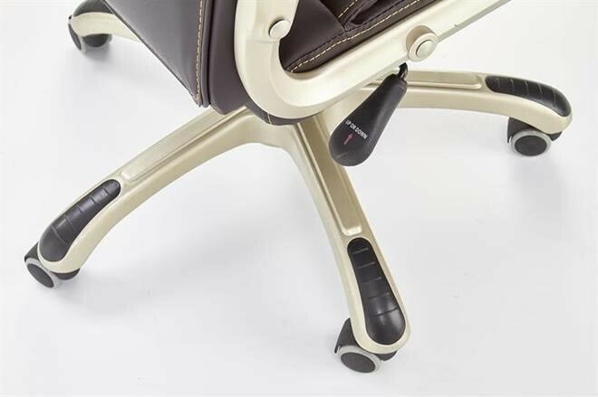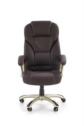 Výškově nastavitelné křeslo Desmond s mechanismem TILT je vyrobeno z materiálu eko kůže v dezénu tmavě hnědé. Kolečka jsou potažené kaučukem. Maximální nosnost 136 kg. Zboží je dodáváno v demontu.